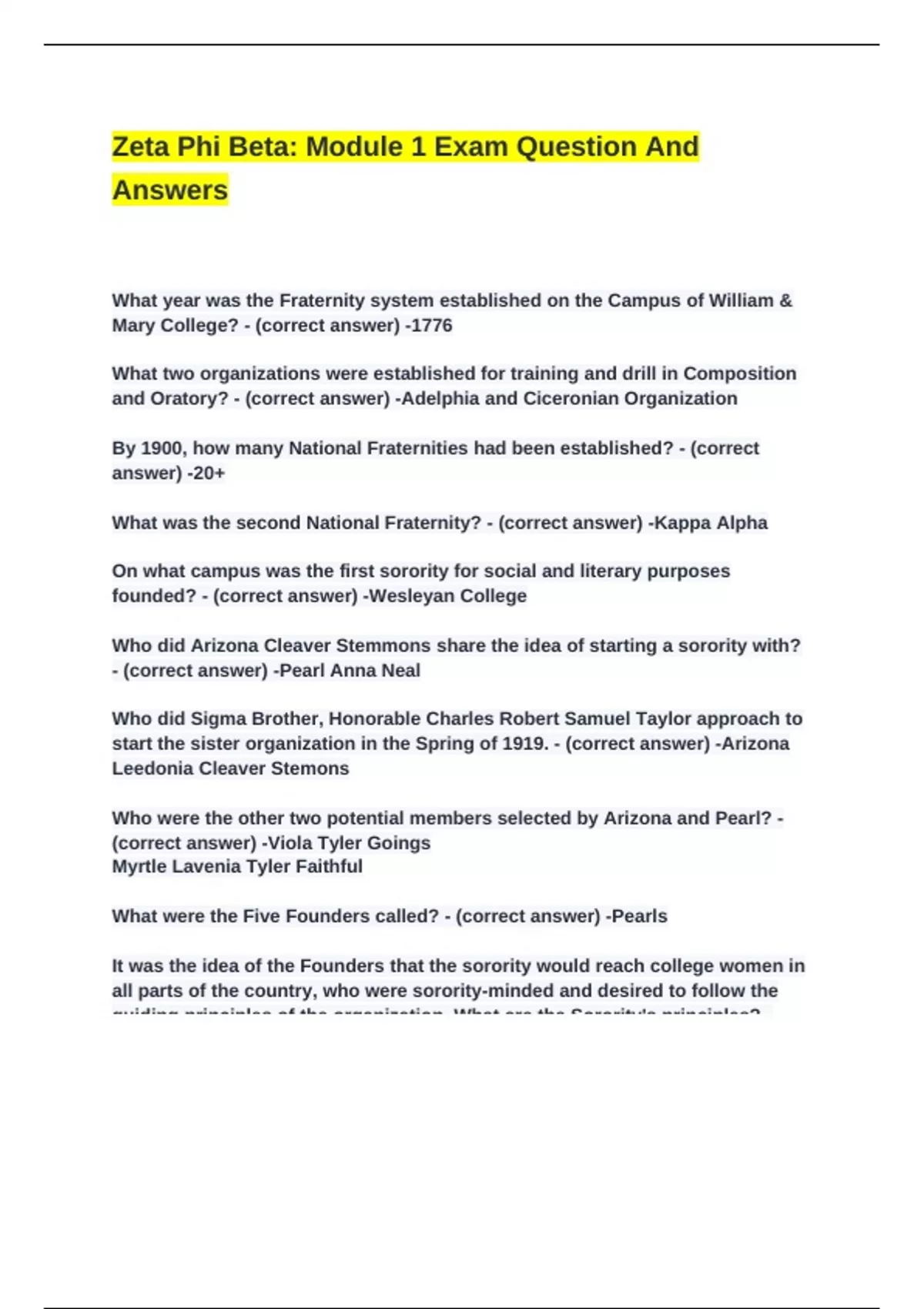 Zeta Phi Beta: Module 1 Exam Question And