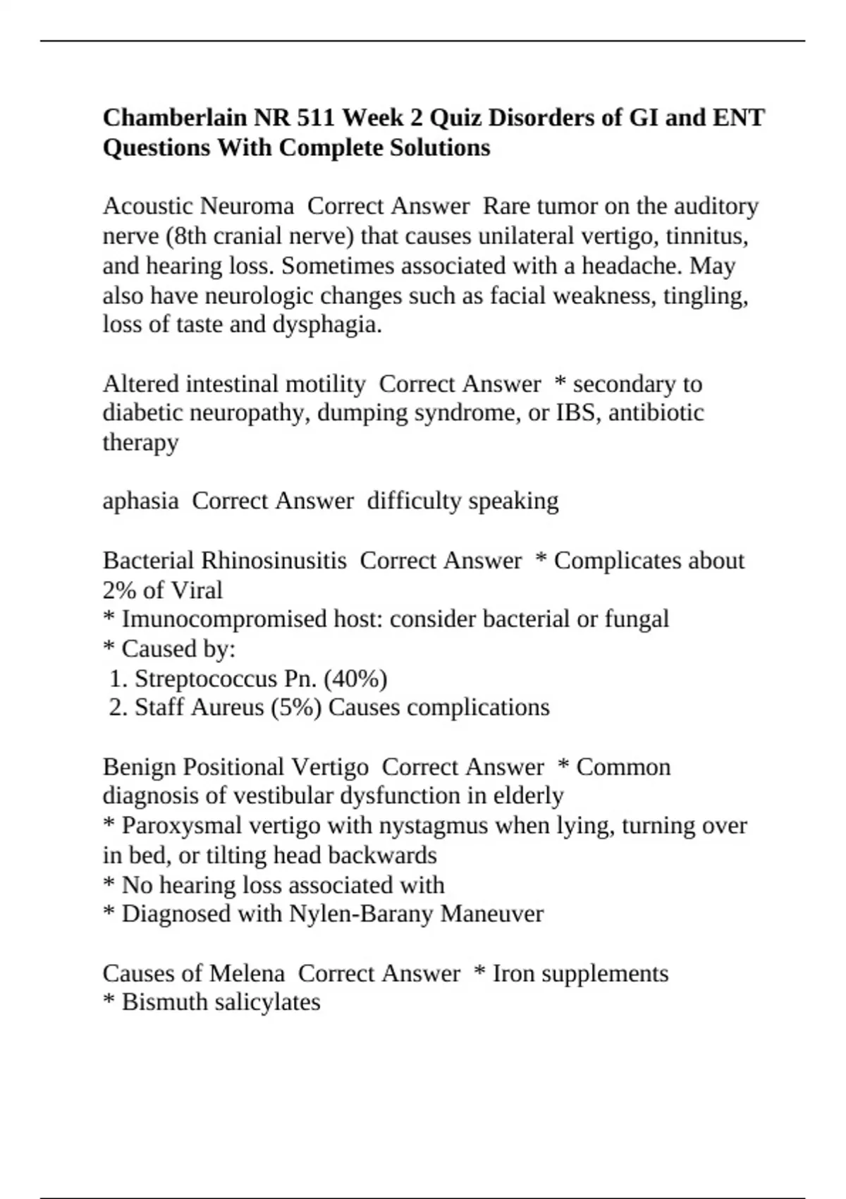 Acoustic Neuroma Correct Answer Rare tumor on the auditory