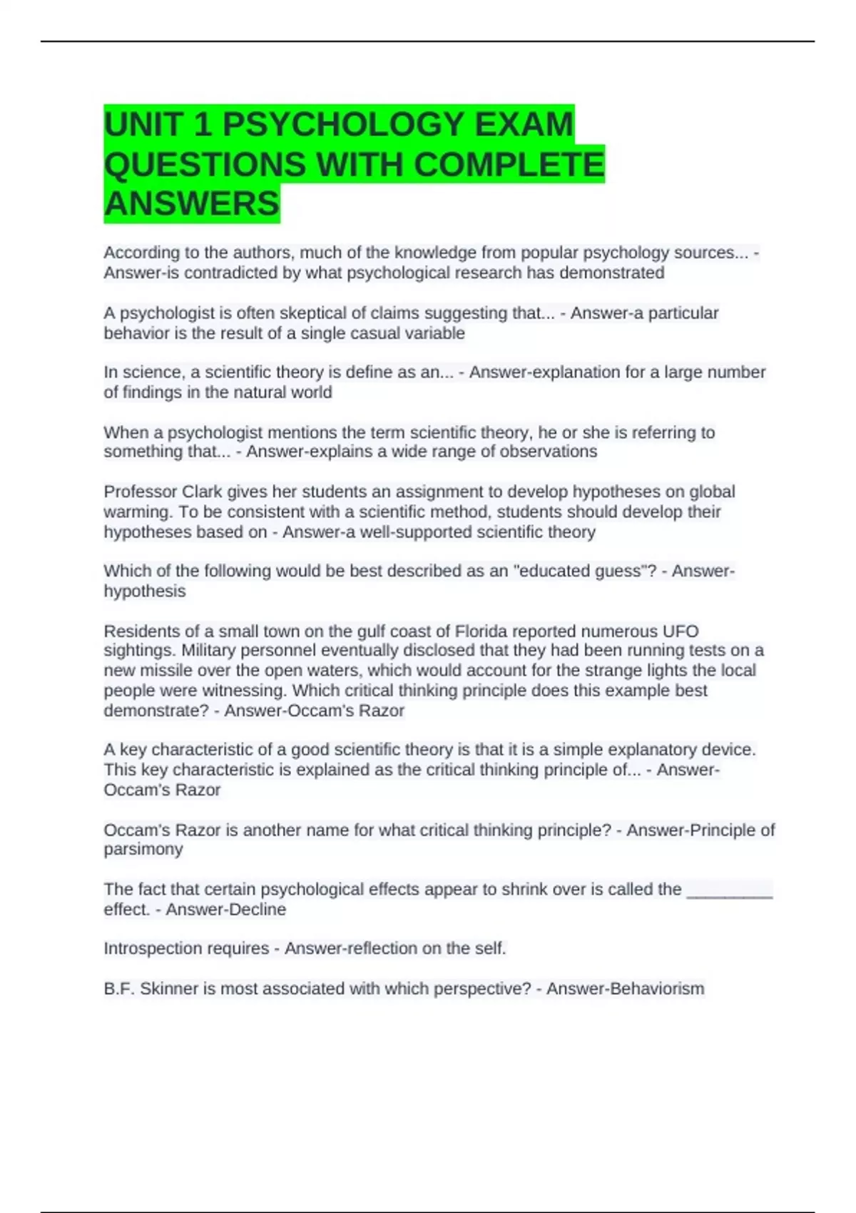 A psychologist is often skeptical of claims suggesting that... - Answer-a particular