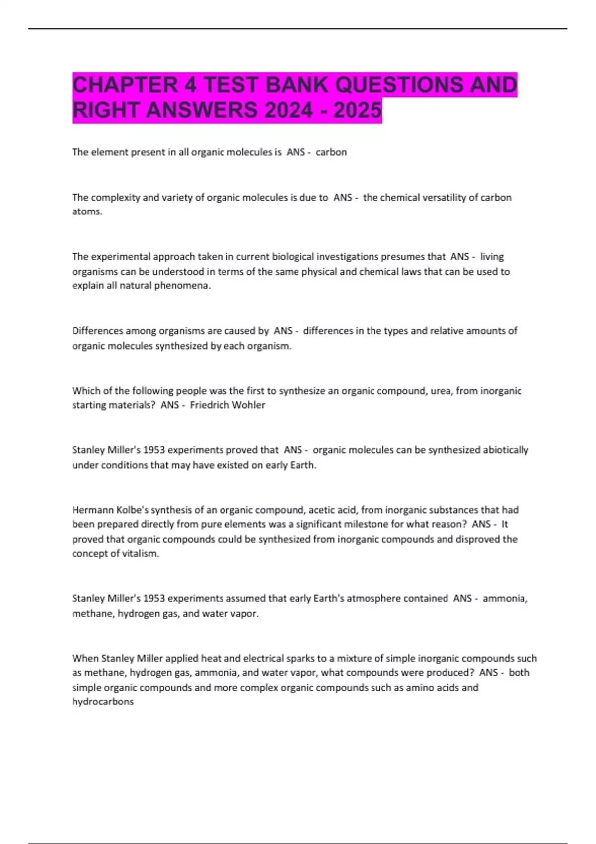 Stanley Miller's 1953 experiments proved that ANS - organic molecules can be synthesized abiotically