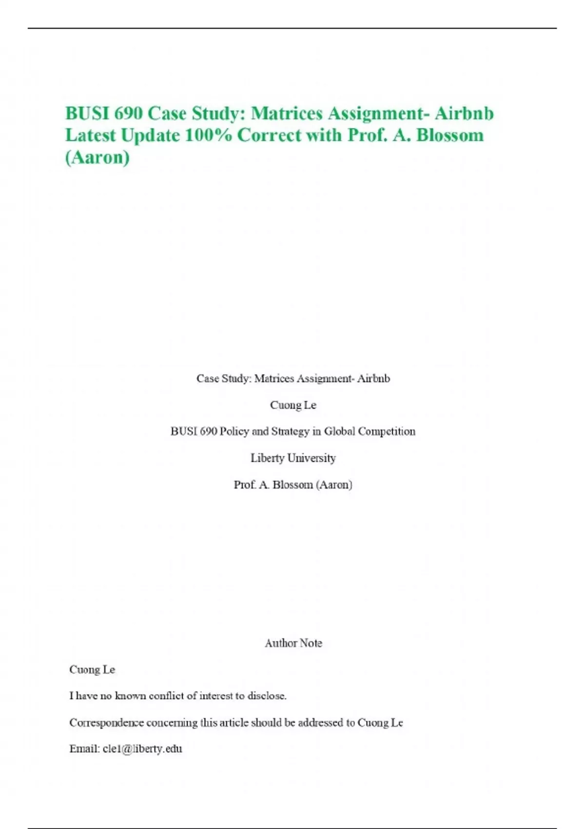BUSI 690 Case Study: Matrices Assignment- Airbnb Latest Update 100% Correct with Prof. A. Blossom (Aaron)