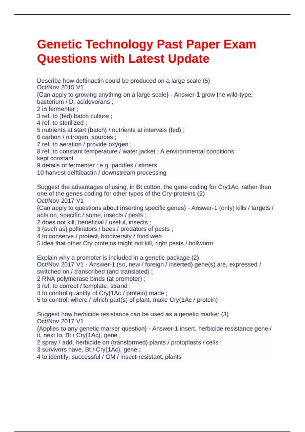 Genetic Technology Past Paper Exam Questions with Latest Update