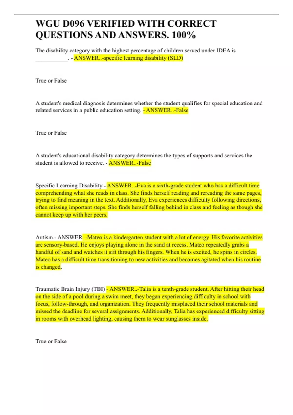 , WGU D096 VERIFIED WITH CORRECT