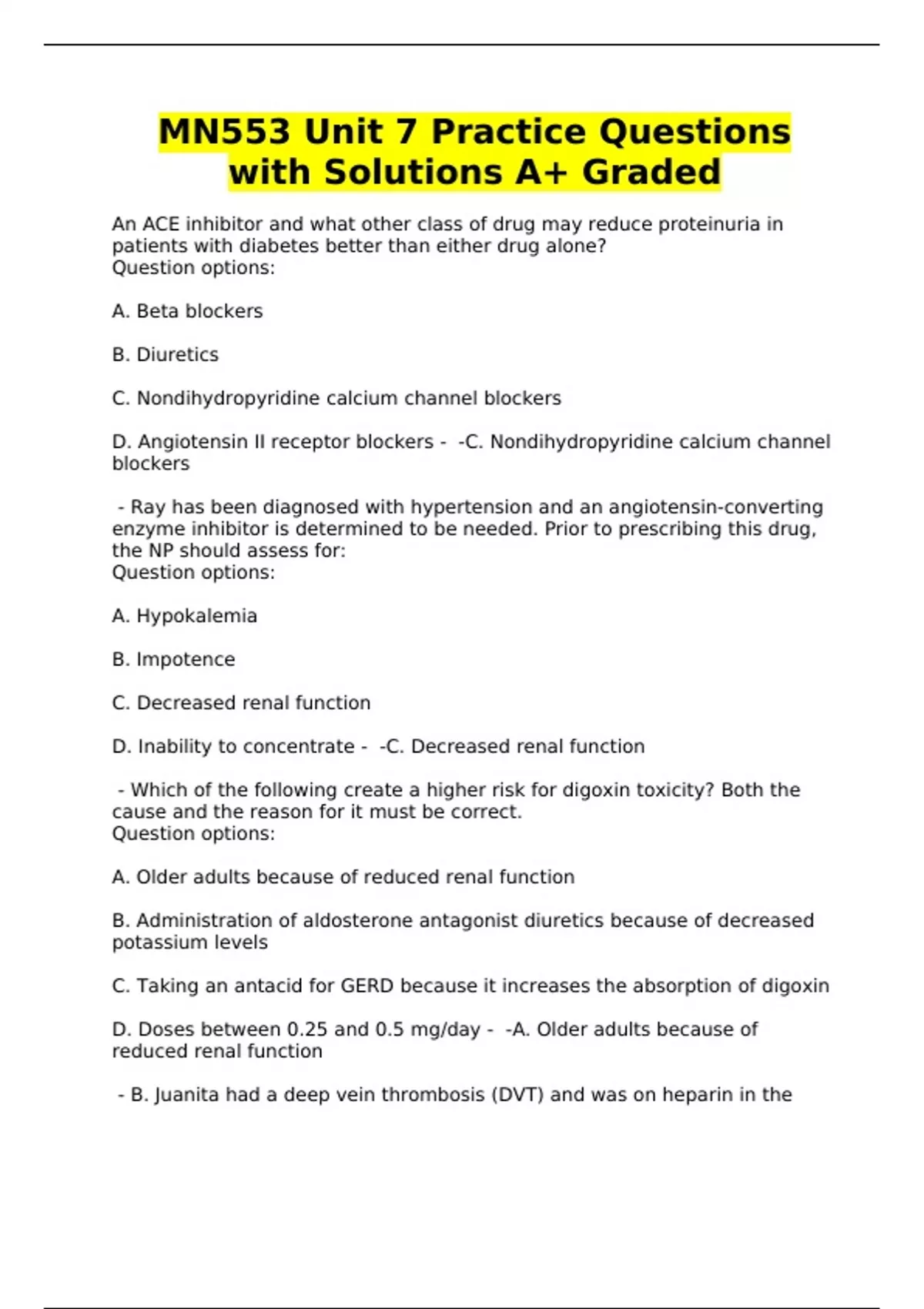 D. Angiotensin II receptor blockers - -C. Nondihydropyridine calcium channel