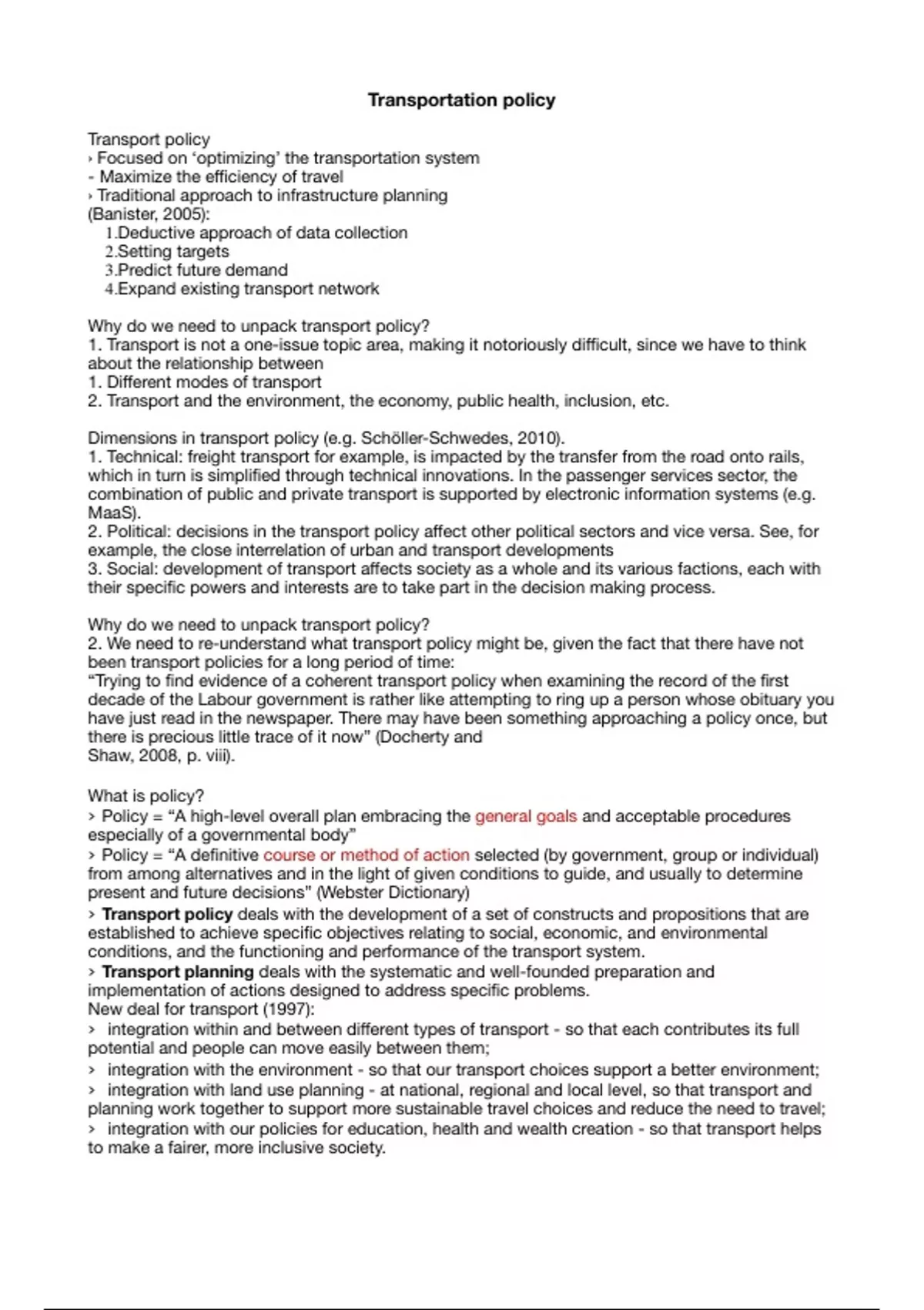 › Transport policy deals with the development of a set of constructs and propositions that are