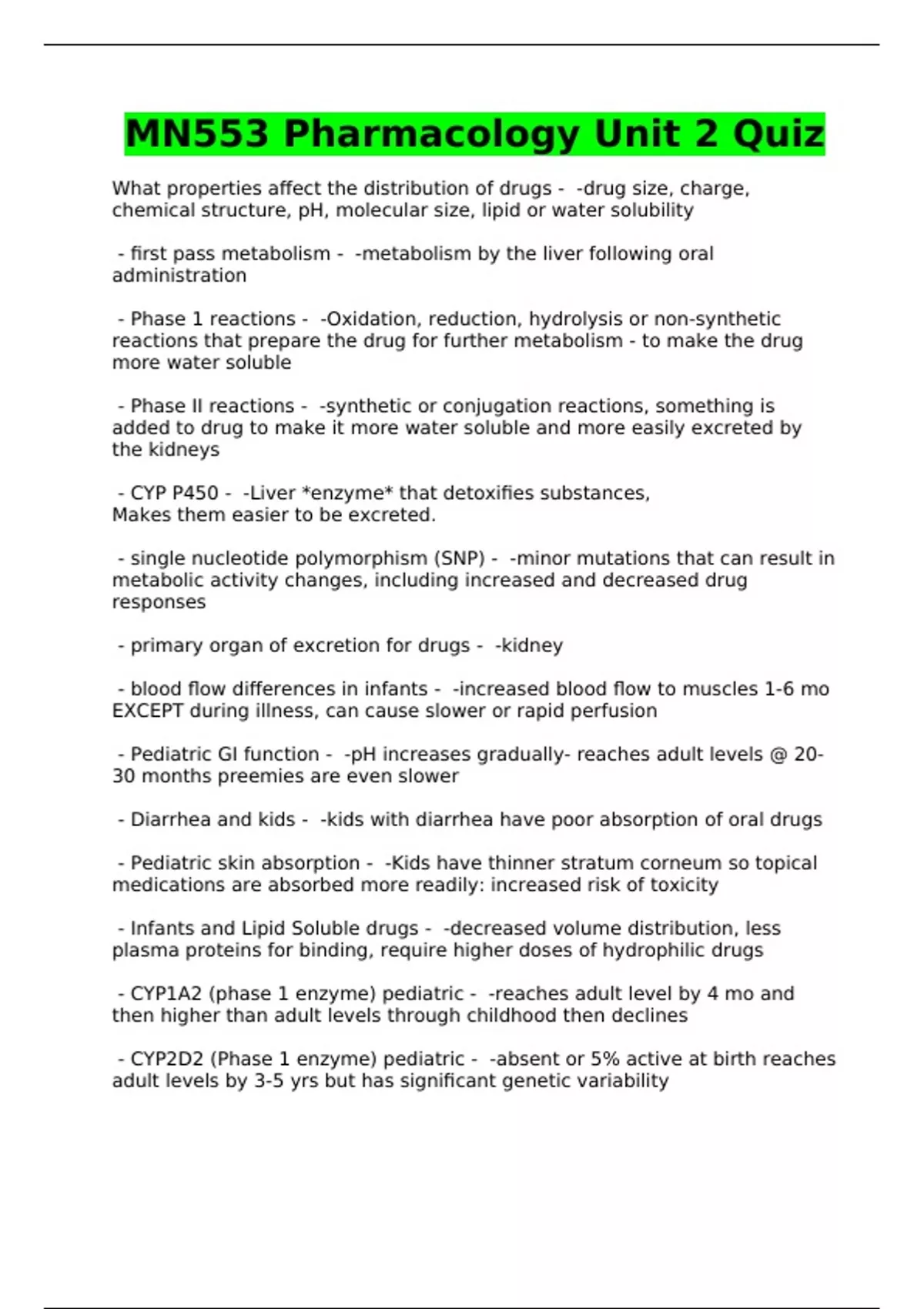 MN553 Pharmacology Unit 2 Quiz
