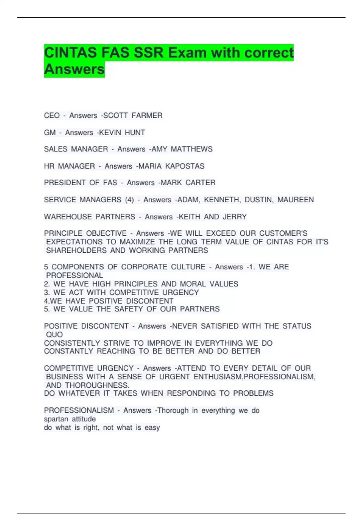 CINTAS FAS SSR Exam with correct