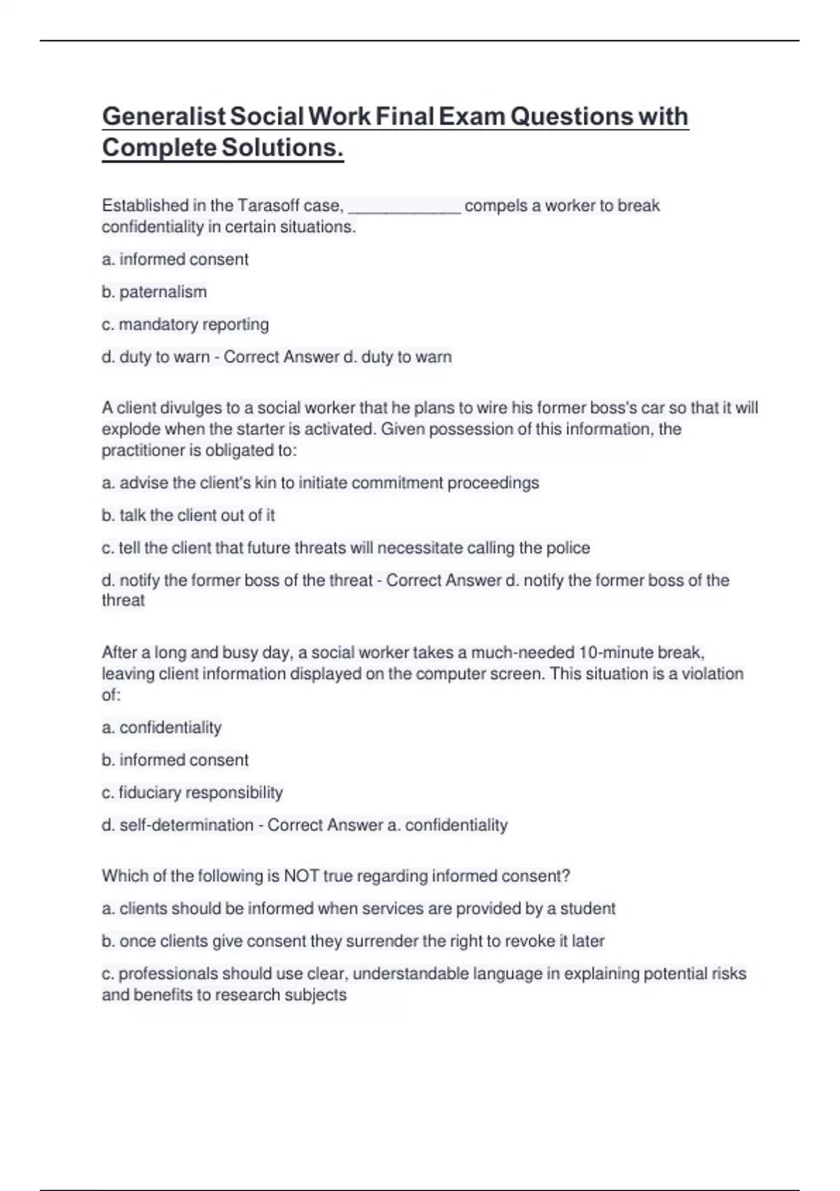 treatment - Correct Answer d. the social worker, when asked, tells a client's partner how
