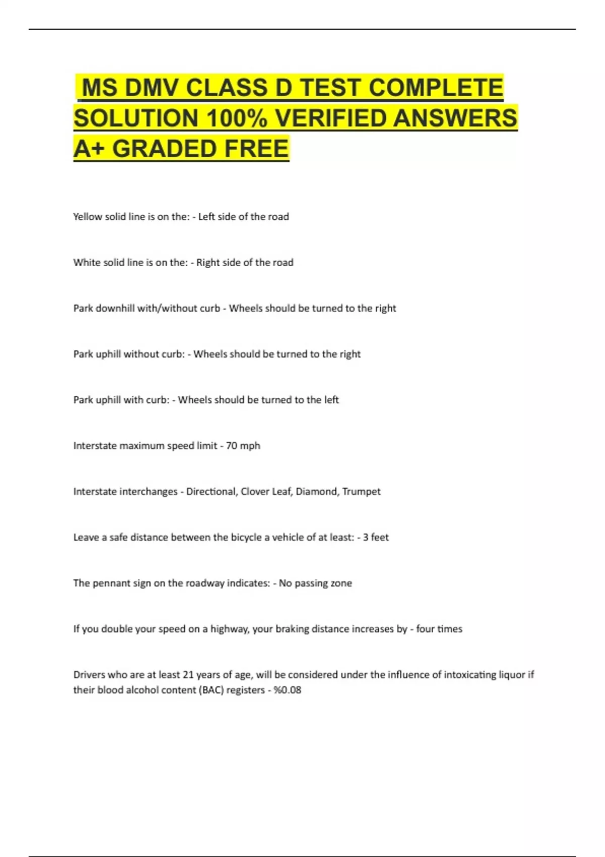 Exam of 5 pages for the course MS DMV CLASS at MS DMV CLASS (MS DMV CLASS D TEST)