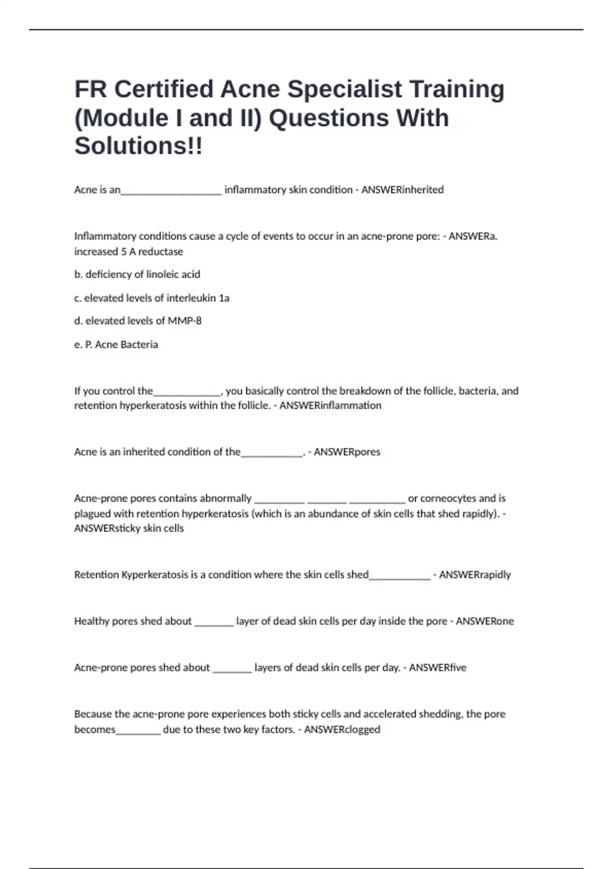 With acne, the body has a difficult time keeping the pore_________. - ANSWERclear