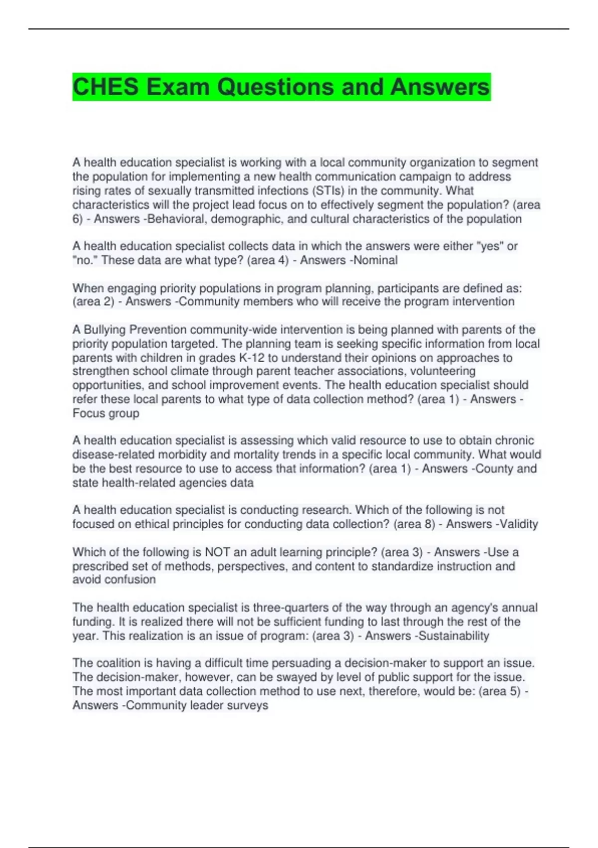 CHES Exam Questions and Answers