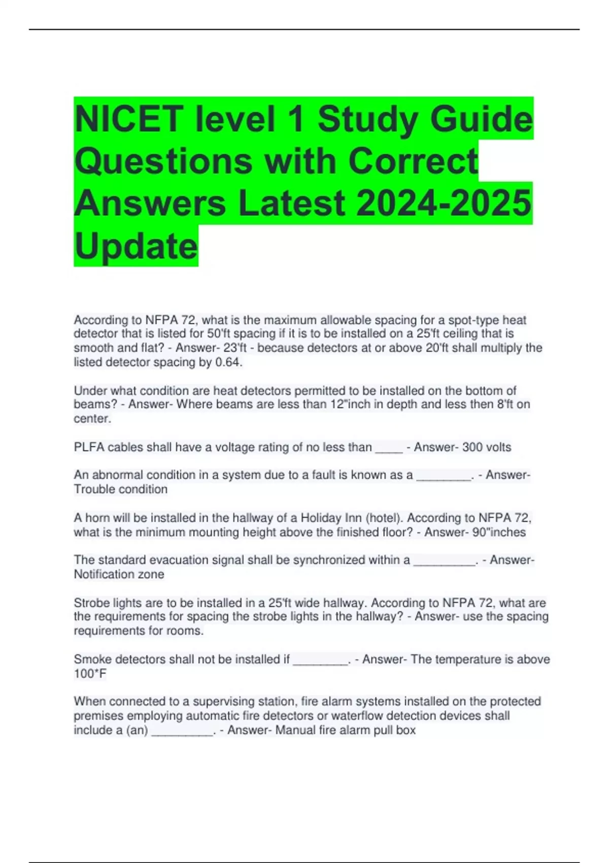 the requirements for spacing the strobe lights in the hallway? - Answer- use the spacing