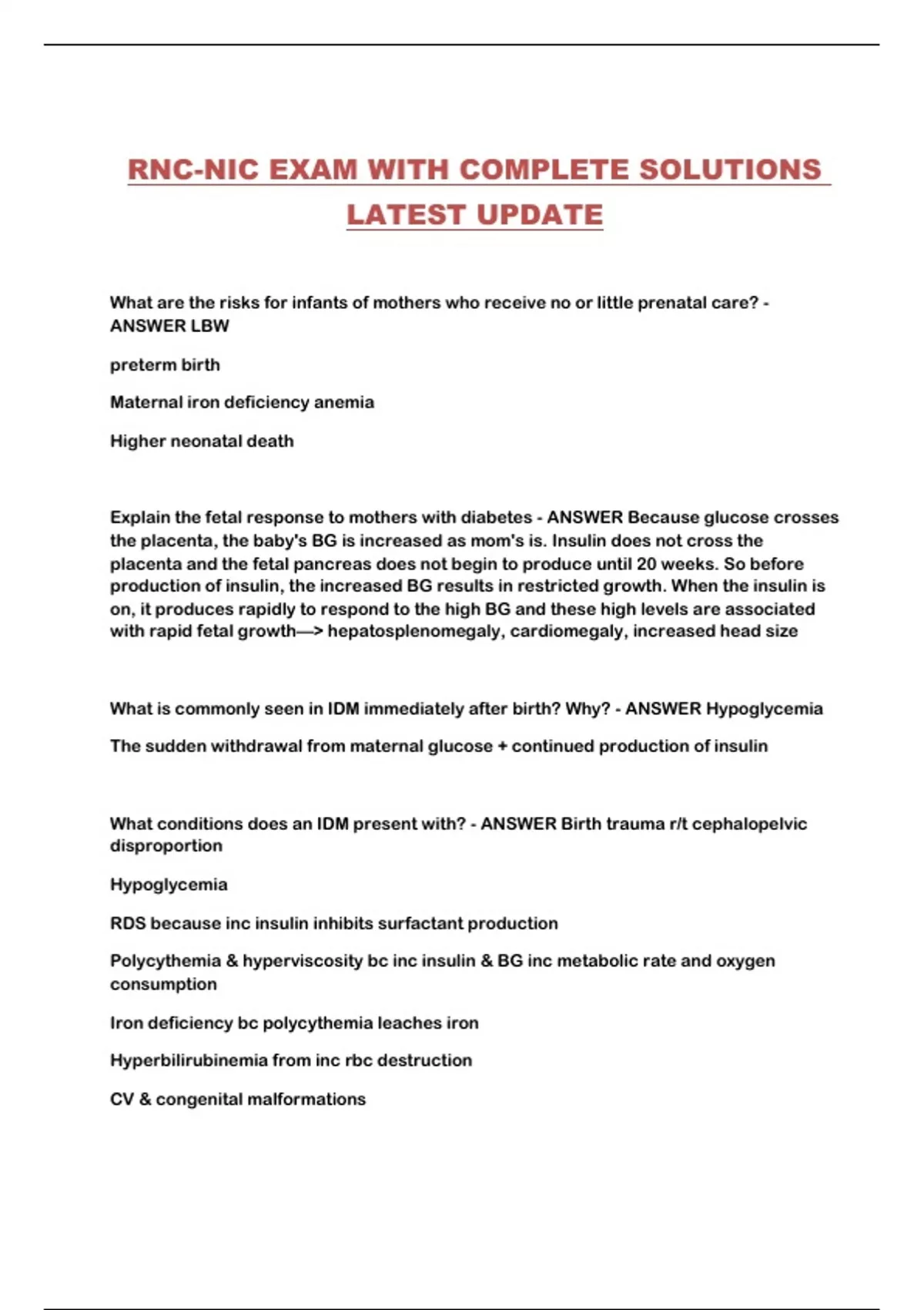 RNC-NIC EXAM WITH COMPLETE SOLUTIONS