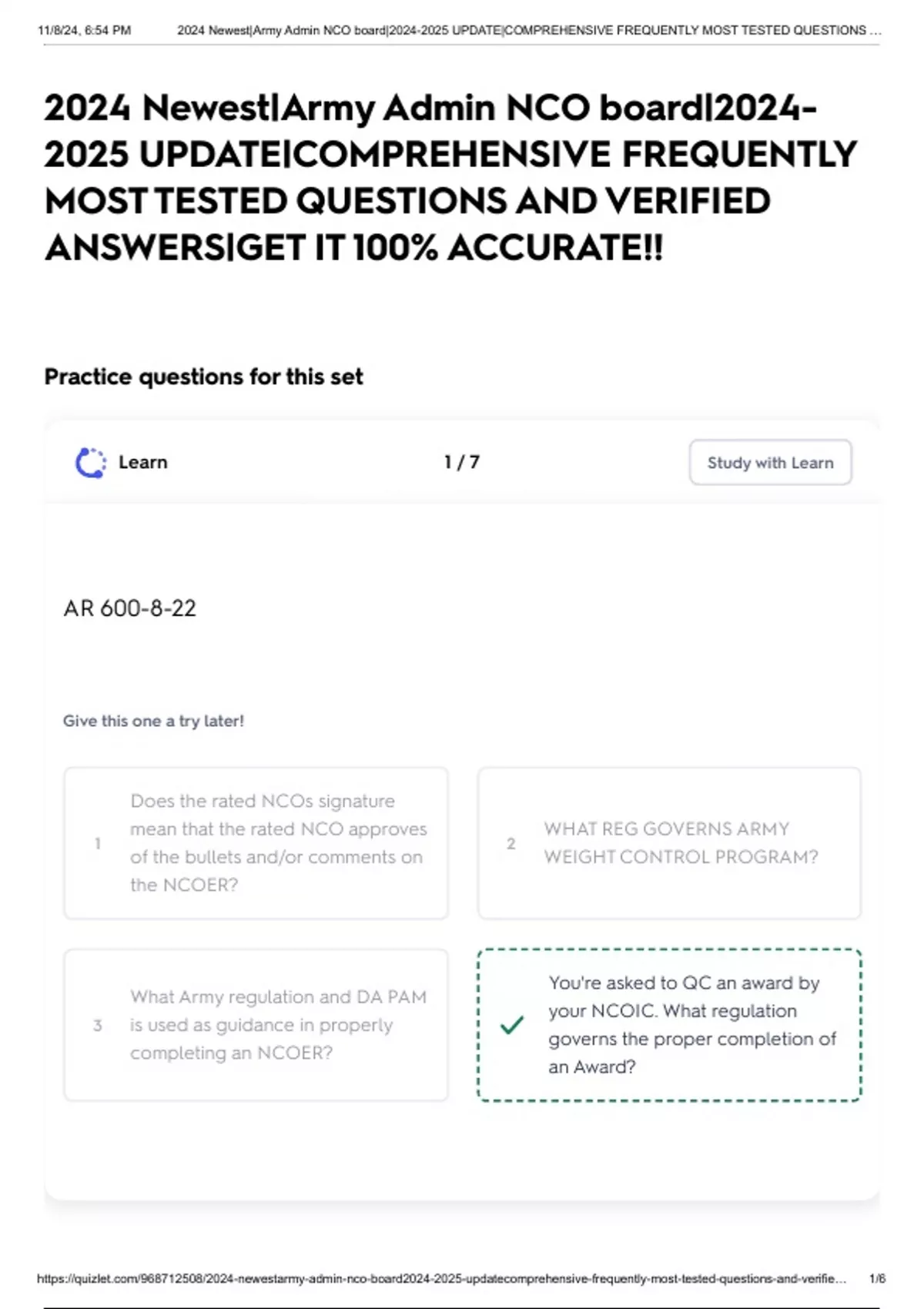 https://quizlet.com/968712508/2024-newestarmy-admin-nco-board2024-2025-updatecomprehensive-frequently-most-tested-questions-and-verifie… 1/6