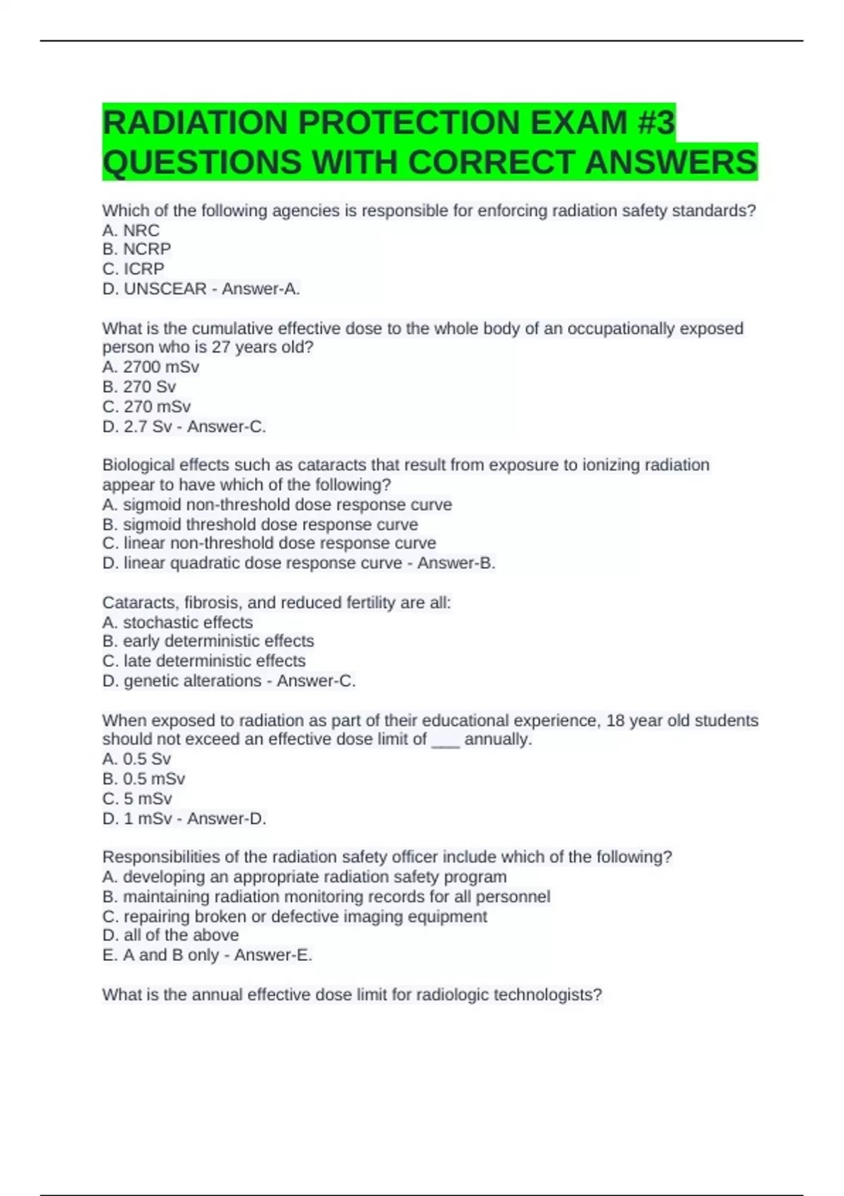 RADIATION PROTECTION EXAM #3