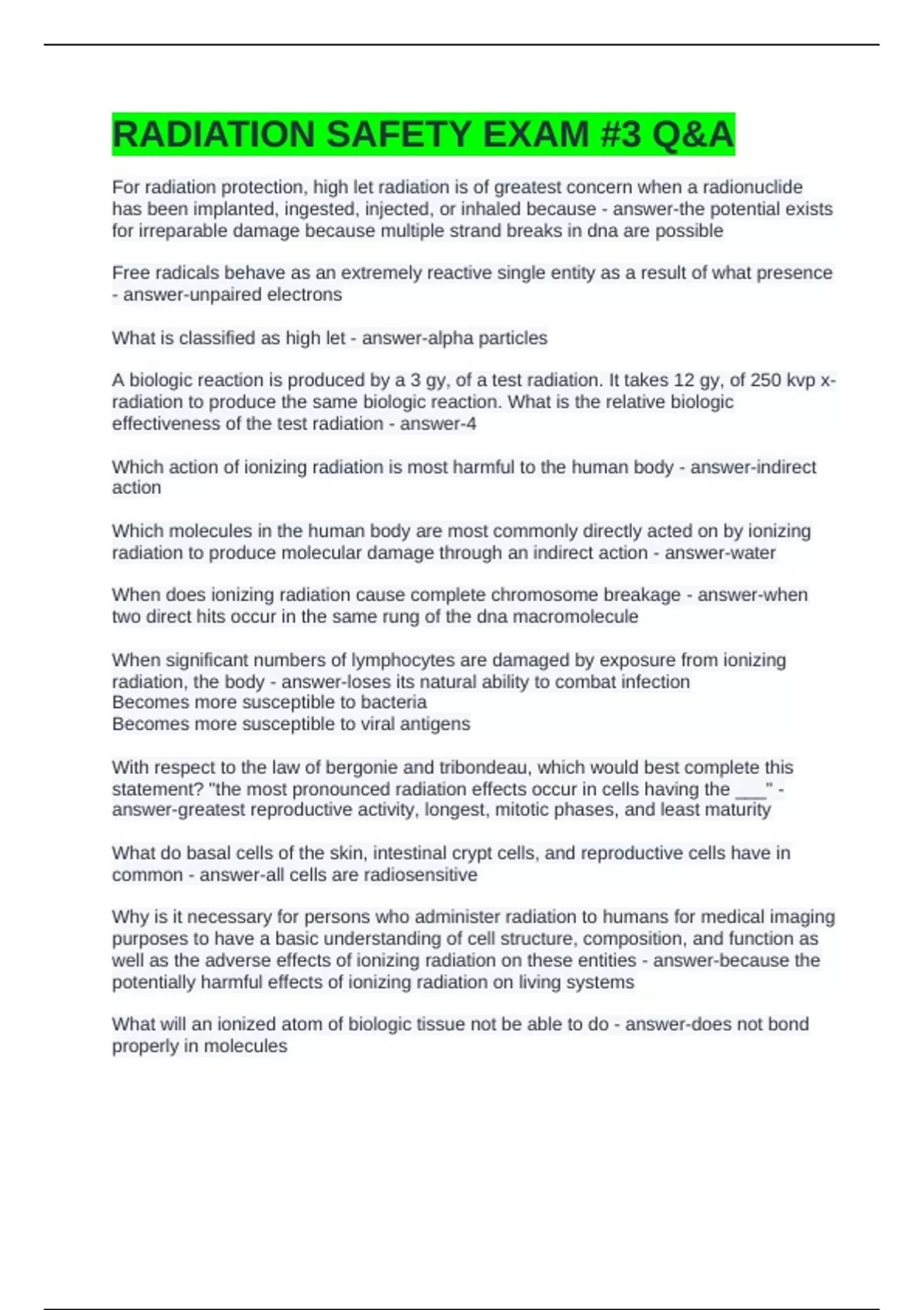RADIATION SAFETY EXAM #3 Q&A