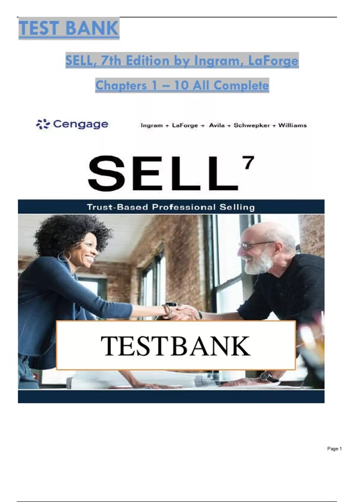 Test Bank for SELL, 7th Edition by Ingram, LaForge, ISBN: 9780357901380, All 10 Chapters Covered, Verified Latest Edition