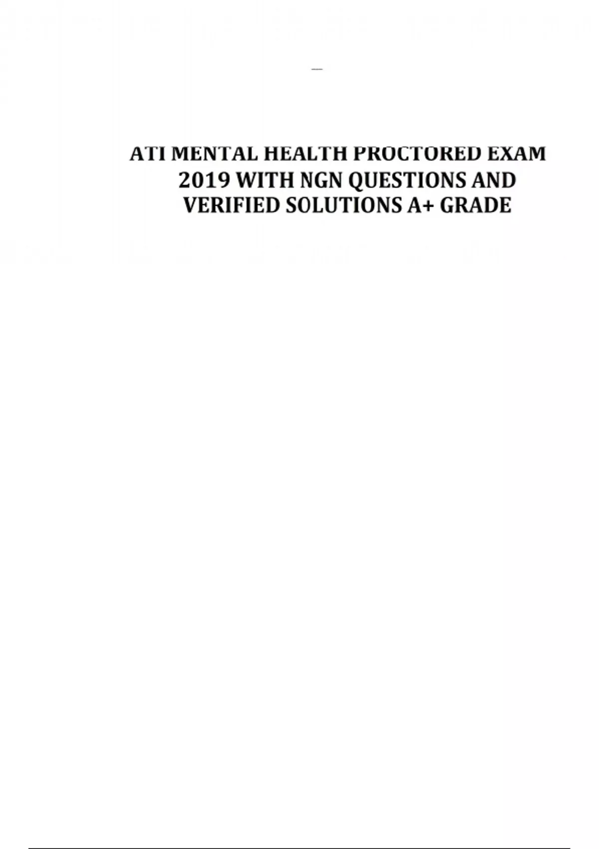 ATI MENTAL HEALTH PROCTORED EXAM 2019 WITH NGN QUESTIONS AND VERIFIED SOLUTIONS A+ GRADE