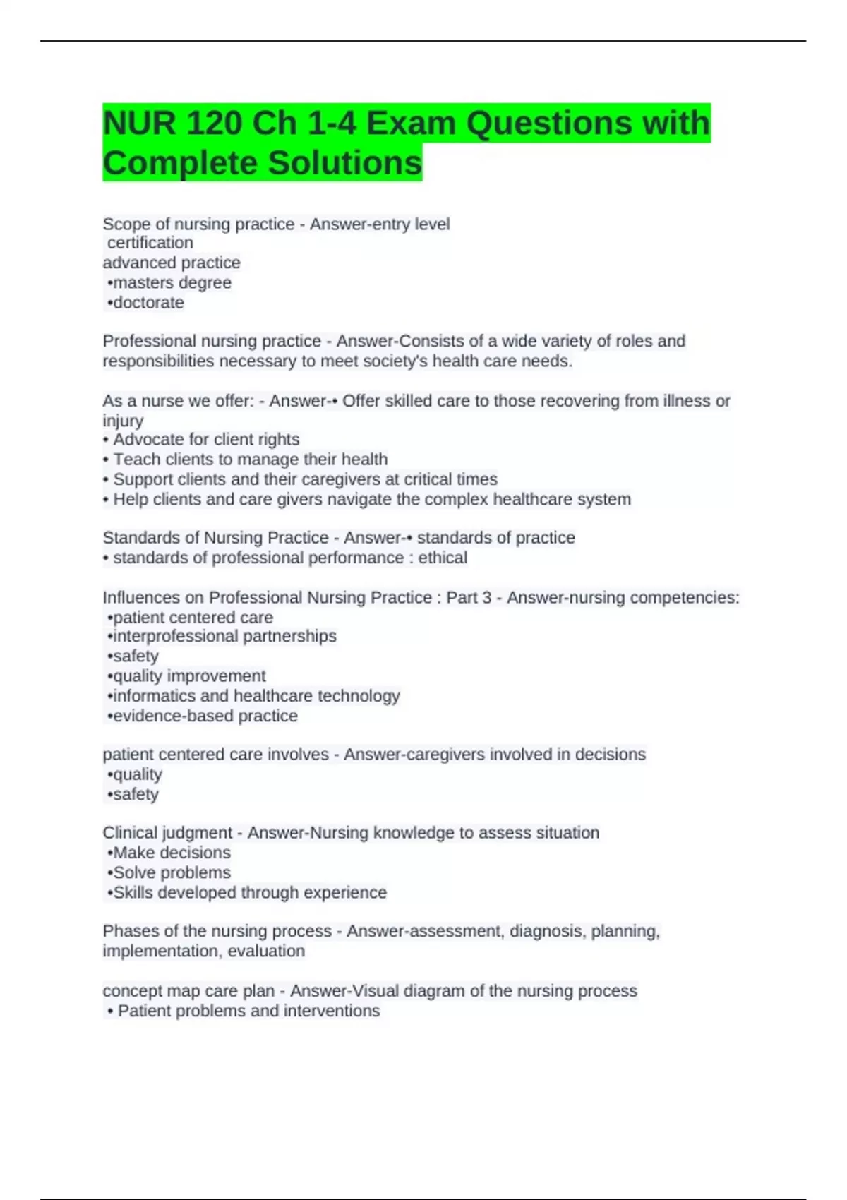 NUR 120 Ch 1-4 Exam Questions with
