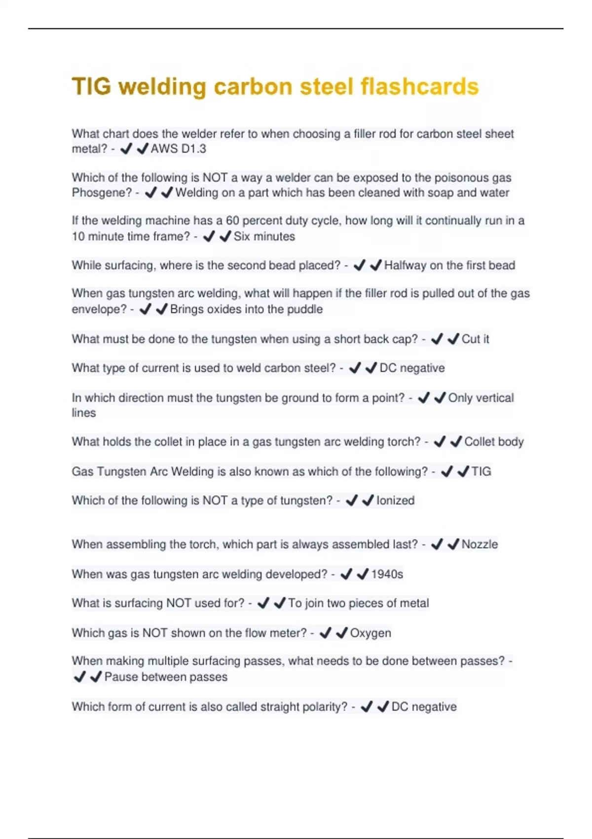Gas Tungsten Arc Welding is also known as which of the following? - ✔️✔️TIG