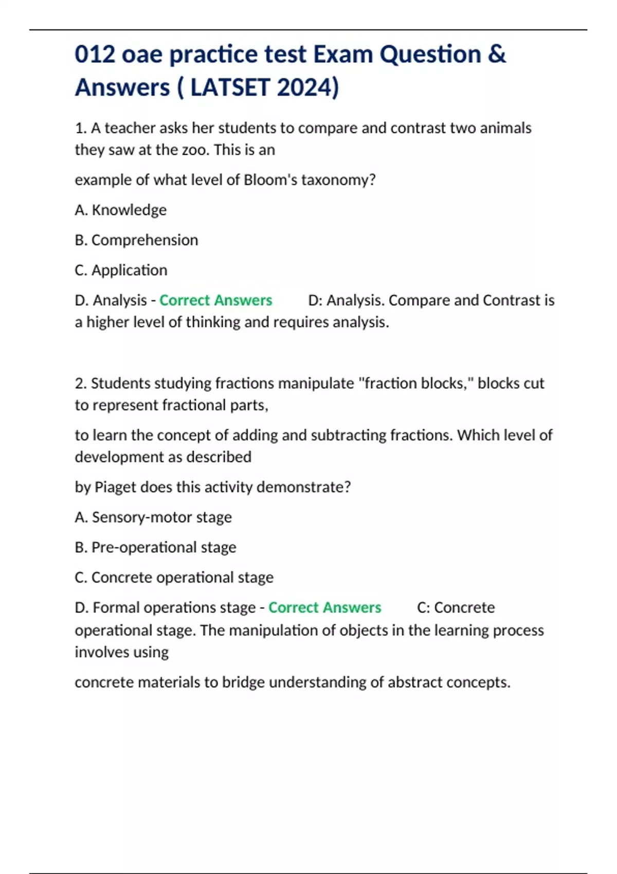D. Formal operations stage - Correct Answers ✅C: Concrete