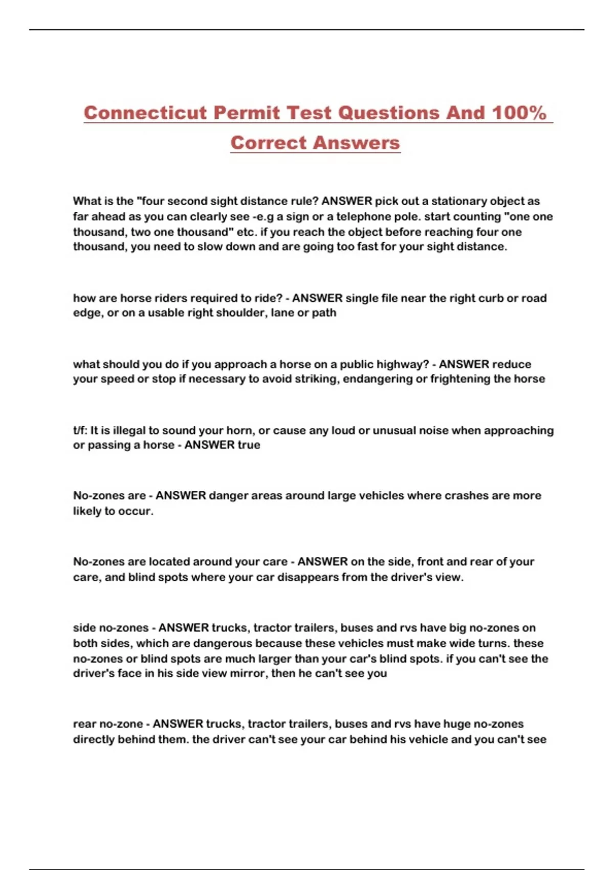 Connecticut Permit Test Questions And 100% Correct Answers...
