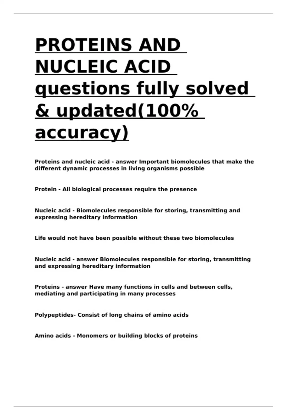 Proteins and nucleic acid - answer Important biomolecules that make the