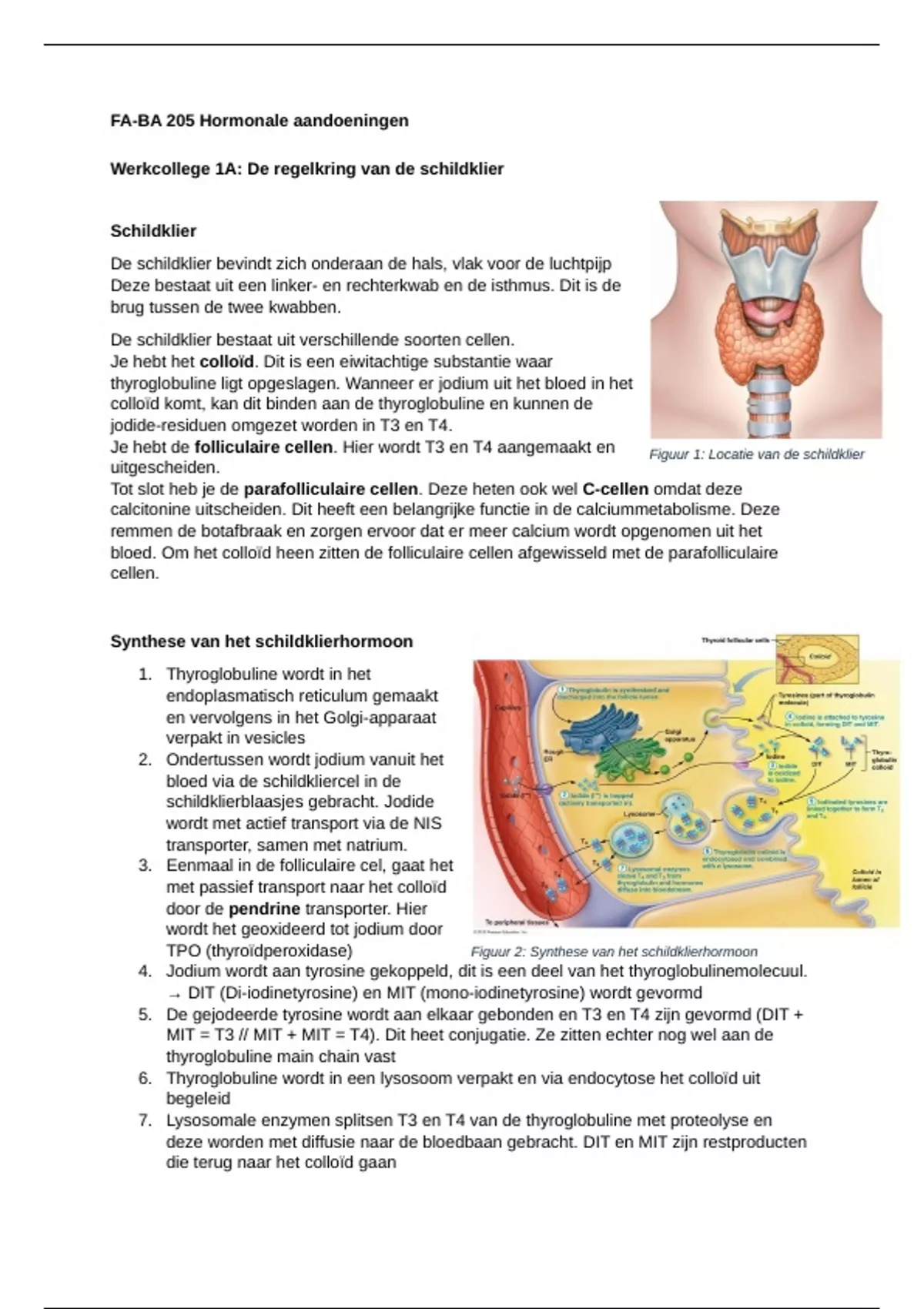 Je hebt de folliculaire cellen. Hier wordt T3 en T4 aangemaakt en Figuur 1: Locatie van de schildklier