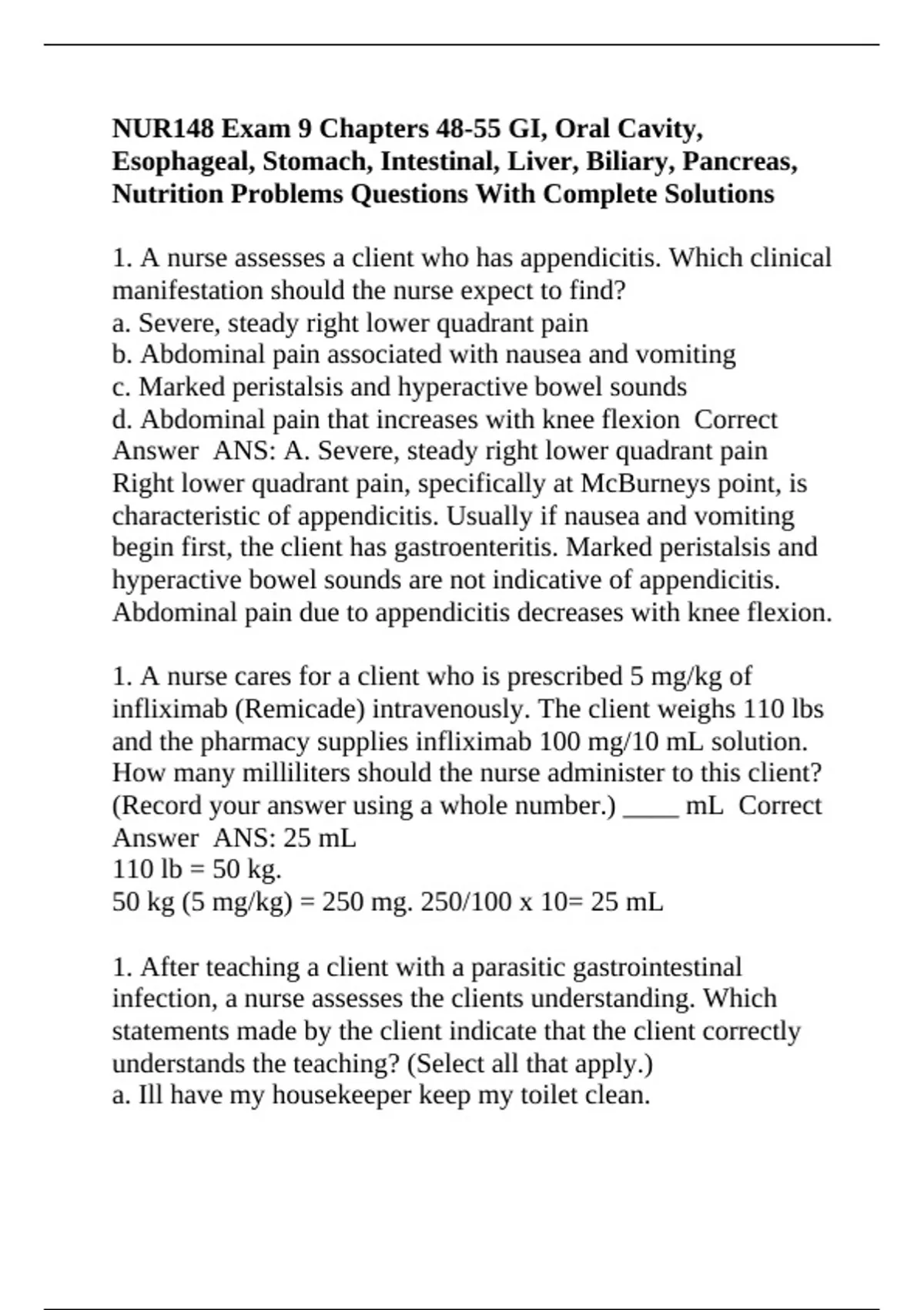 1. A nurse cares for a client who is prescribed 5 mg/kg of