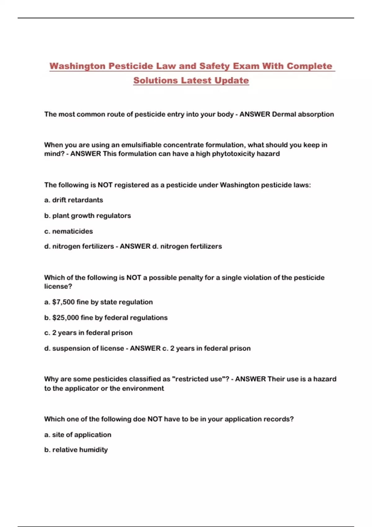 The most common route of pesticide entry into your body - ANSWER Dermal absorption