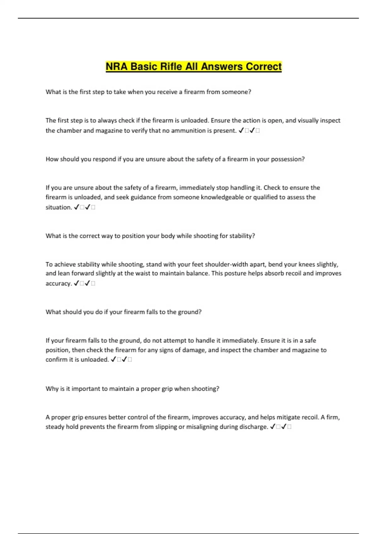 If you are unsure about the safety of a firearm, immediately stop handling it. Check to ensure the