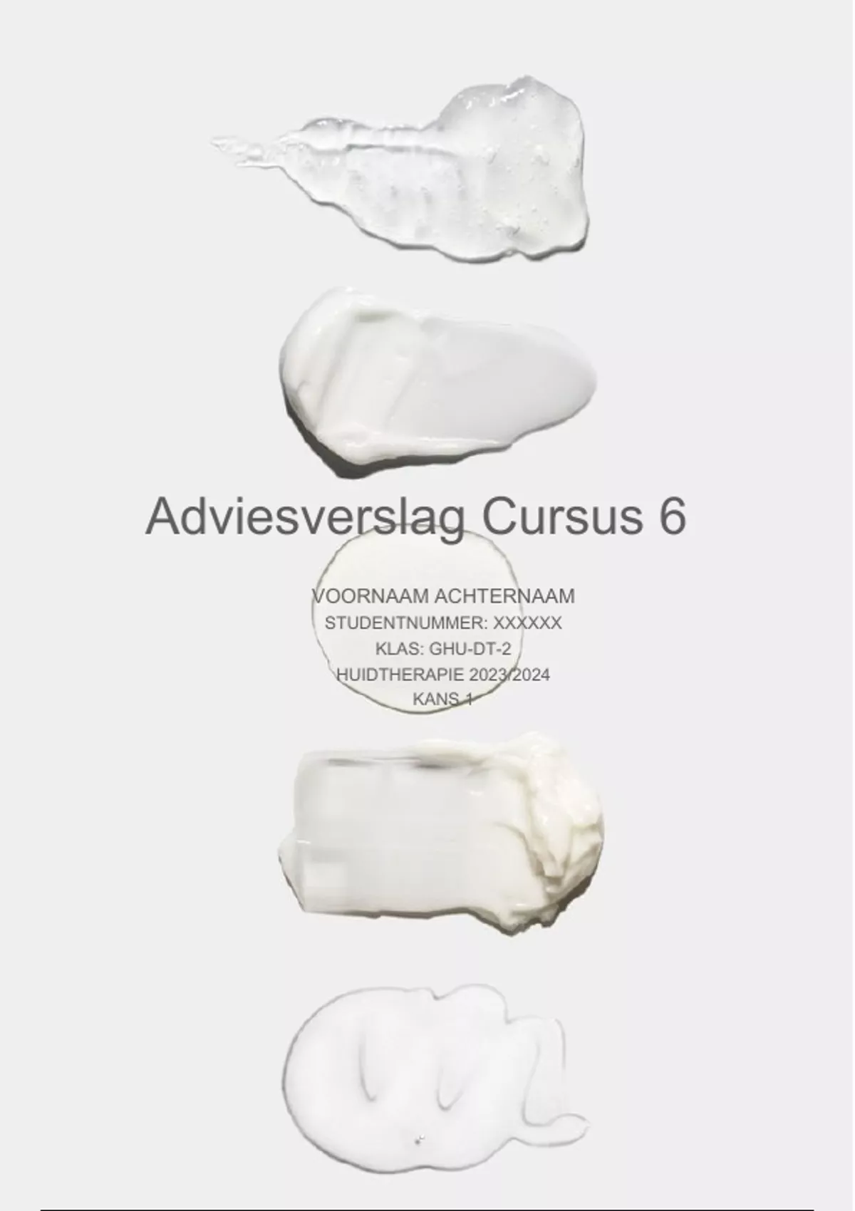 Voor u ligt het adviesplan. Dit verslag komt voort uit cursus 6: prescreening & huidzorg. Er zijn drie