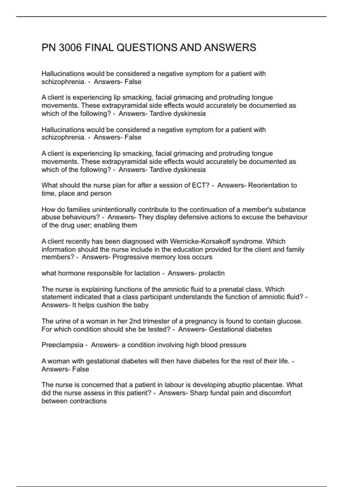 PN 3006 FINAL QUESTIONS AND ANSWERS