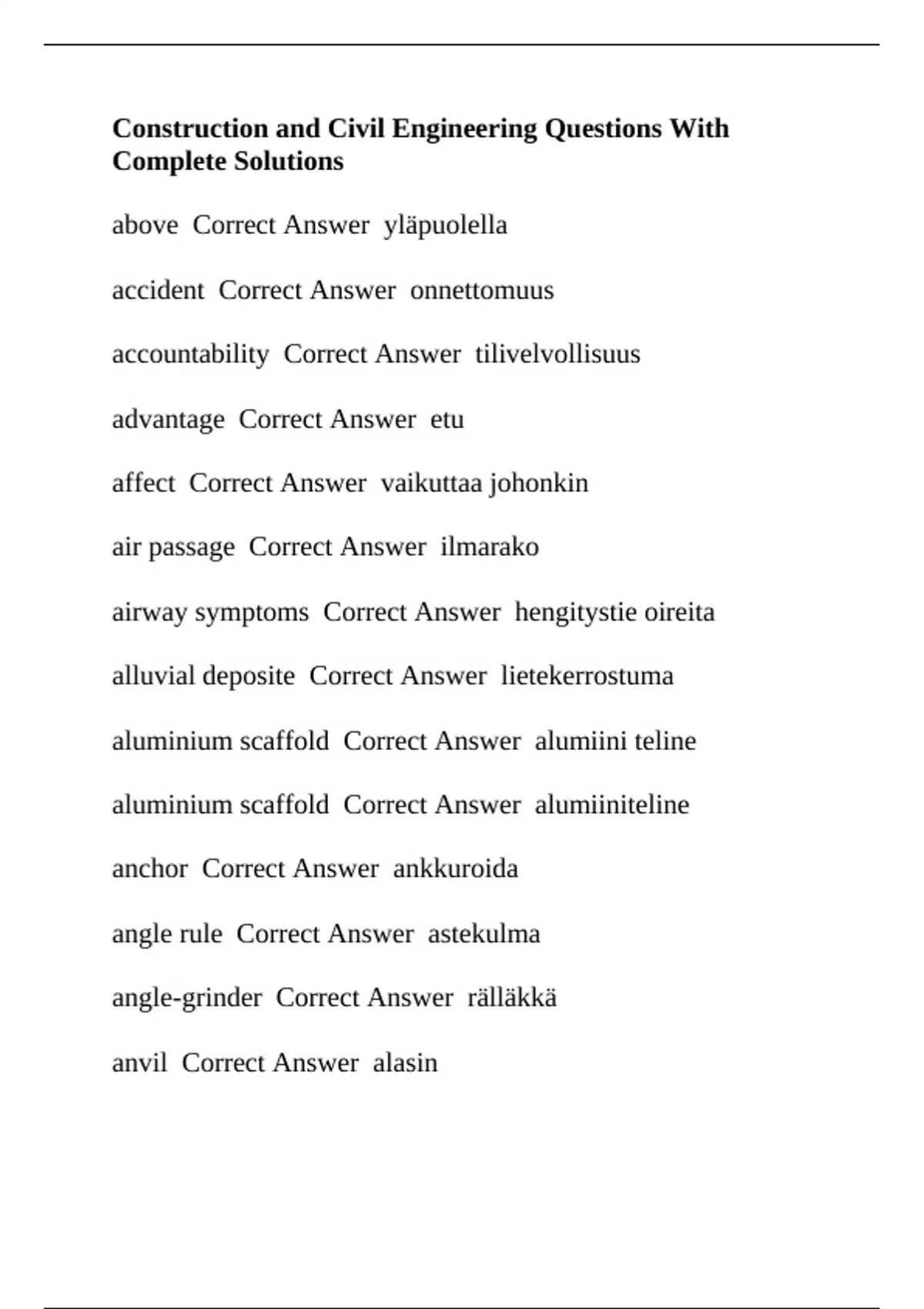 Construction and Civil Engineering Questions With Complete Solutions