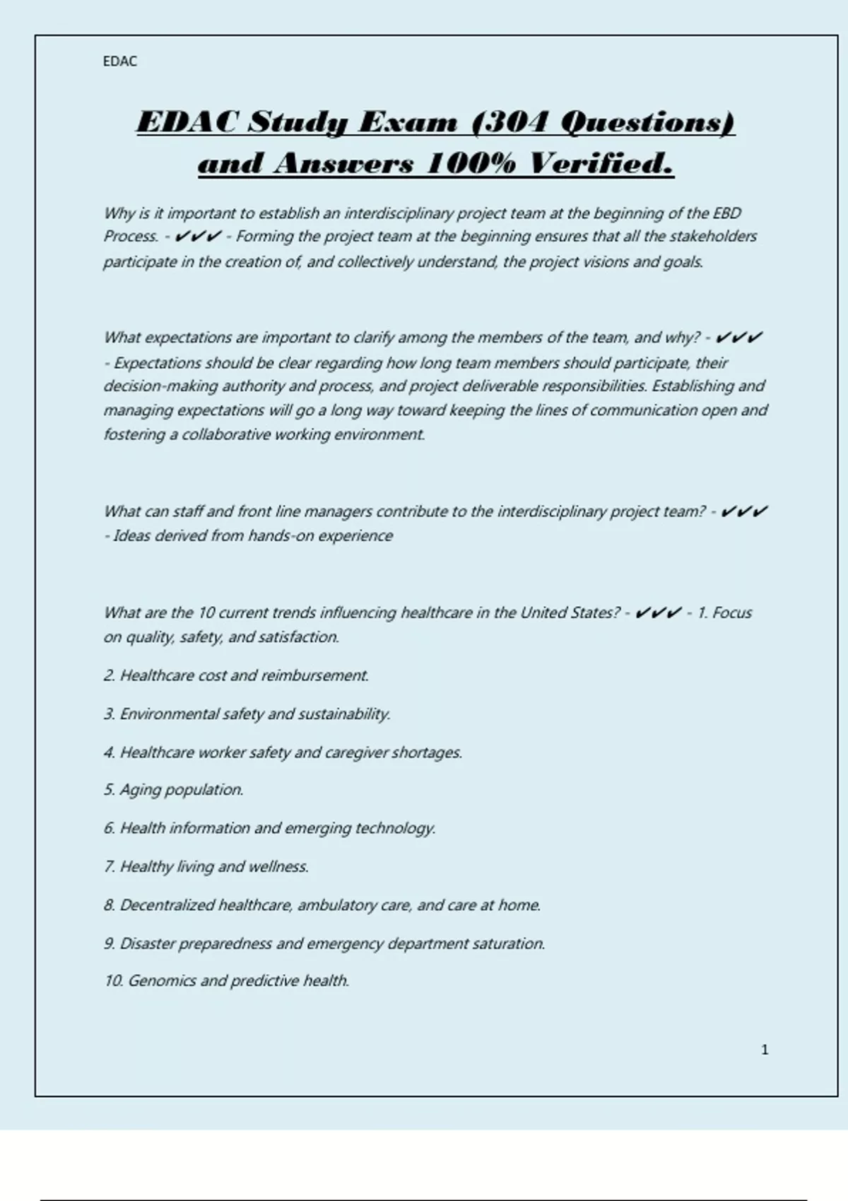 EDAC Study Exam (304 Questions)