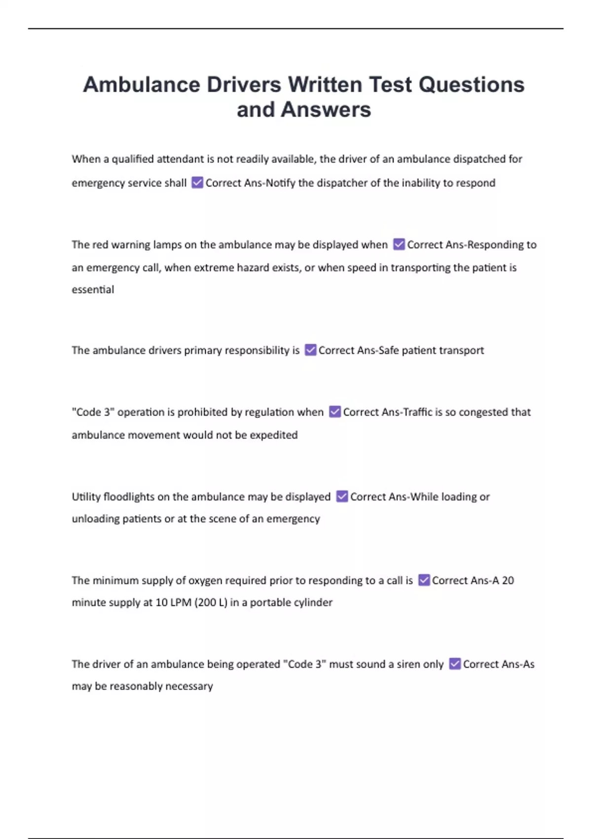 You may not legally operate an unsafe ambulance Correct Ans-At any time
