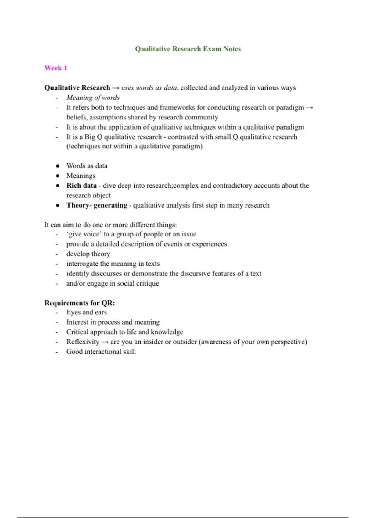 - Reflexivity → are you an insider or outsider (awareness of your own perspective)