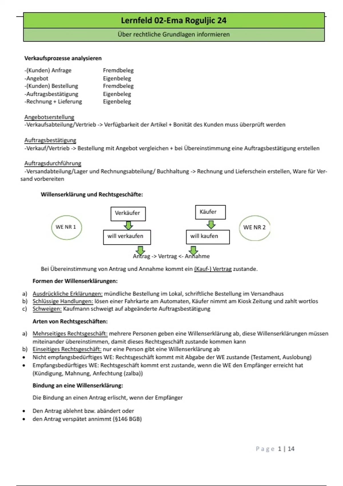 a) Mehrseitiges Rechtsgeschäft: mehrere Personen geben eine Willenserklärung ab, diese Willenserklärungen müssen