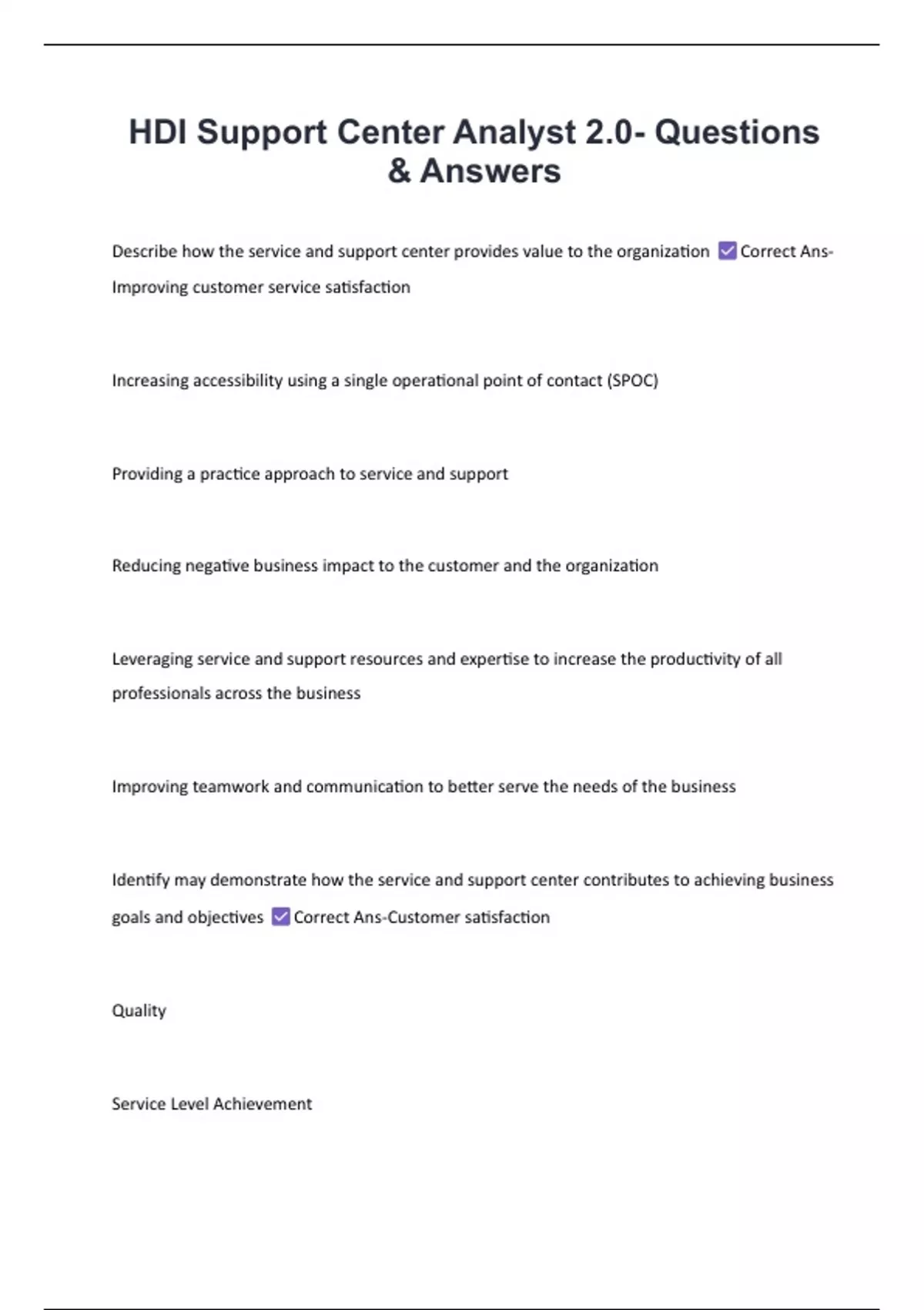Describe how the service and support center provides value to the organization Correct Ans-