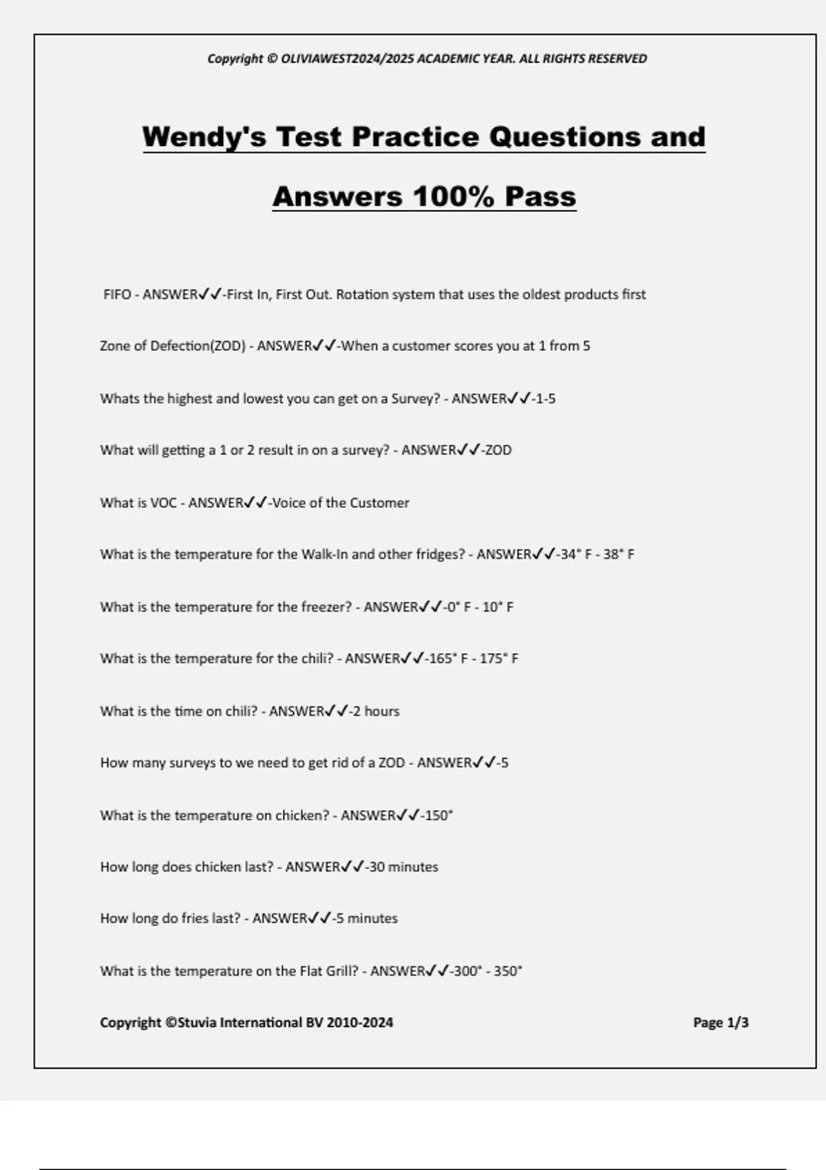 Wendy's Test Practice Questions and