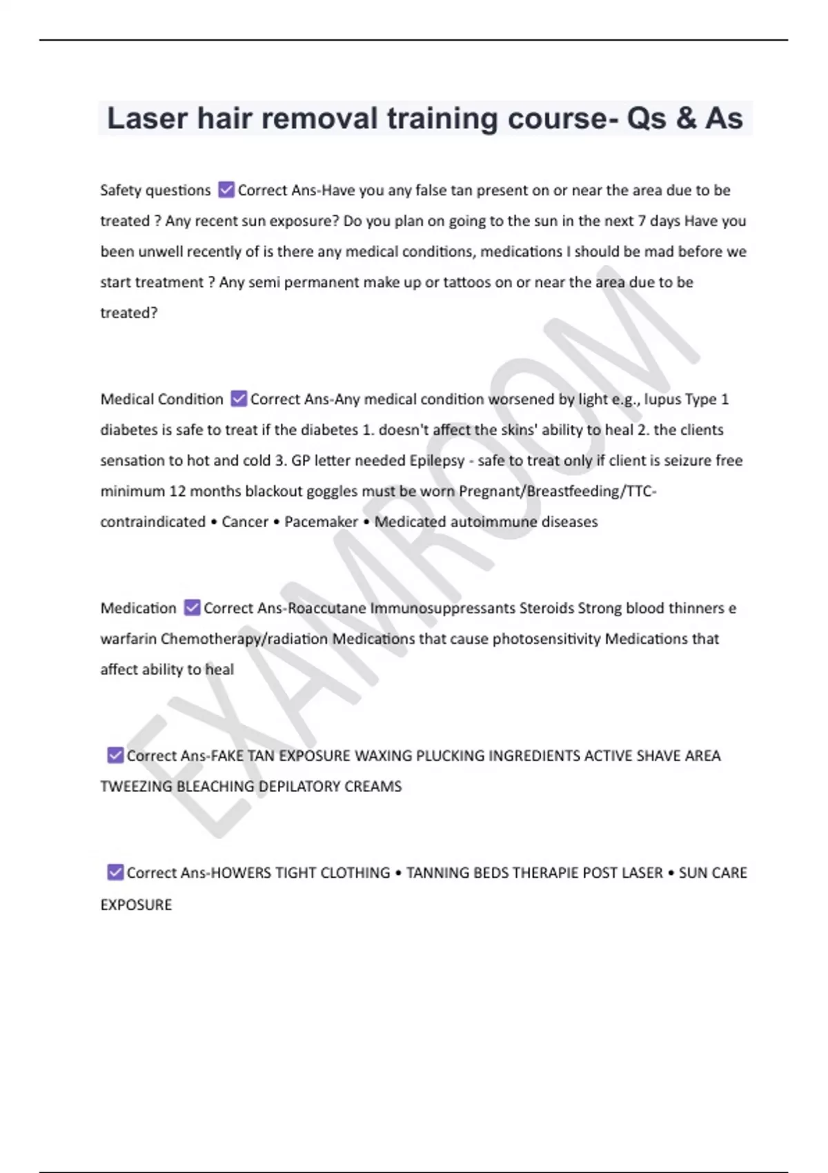 Safety questions Correct Ans-Have you any false tan present on or near the area due to be