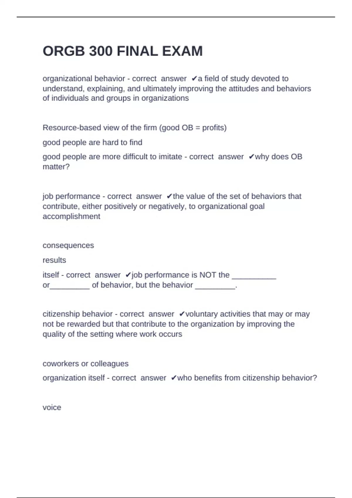 citizenship behavior - correct answer ✔voluntary activities that may or may