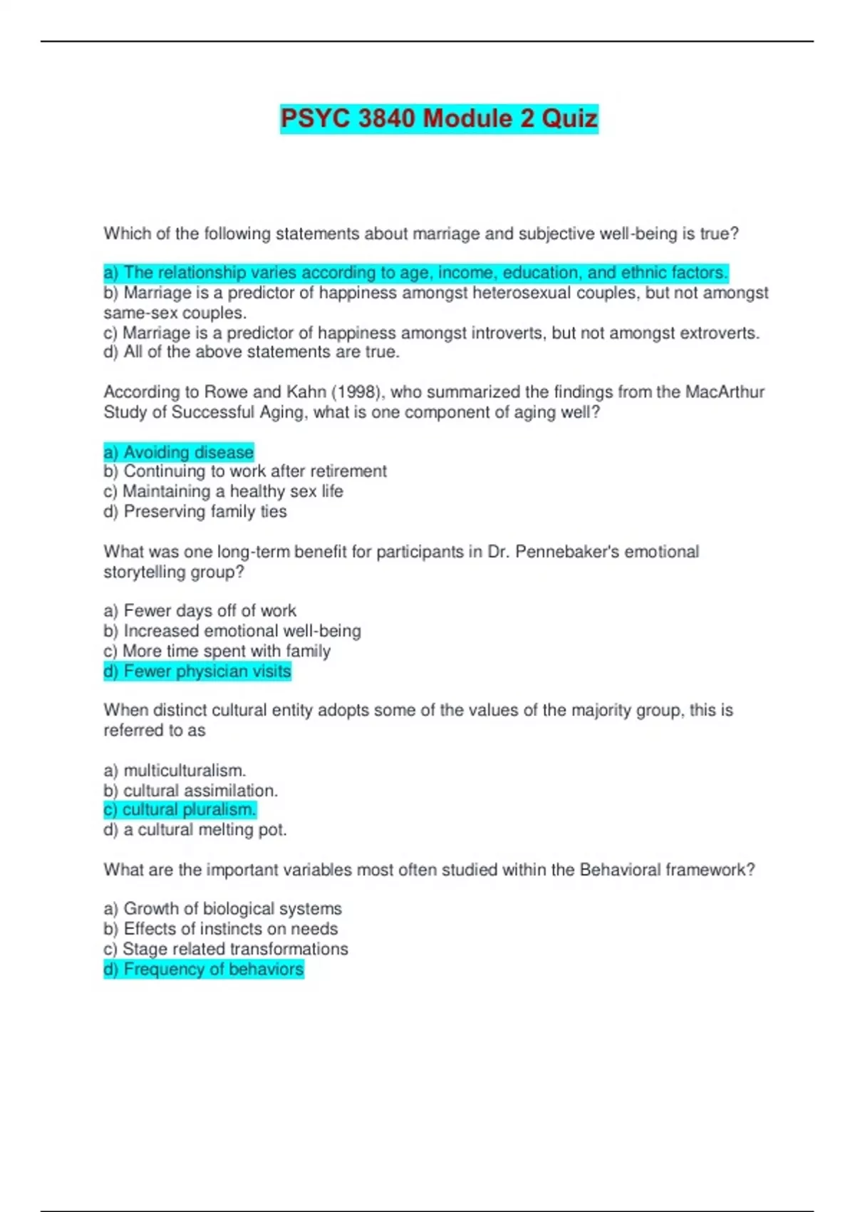 Study of Successful Aging, what is one component of aging well?