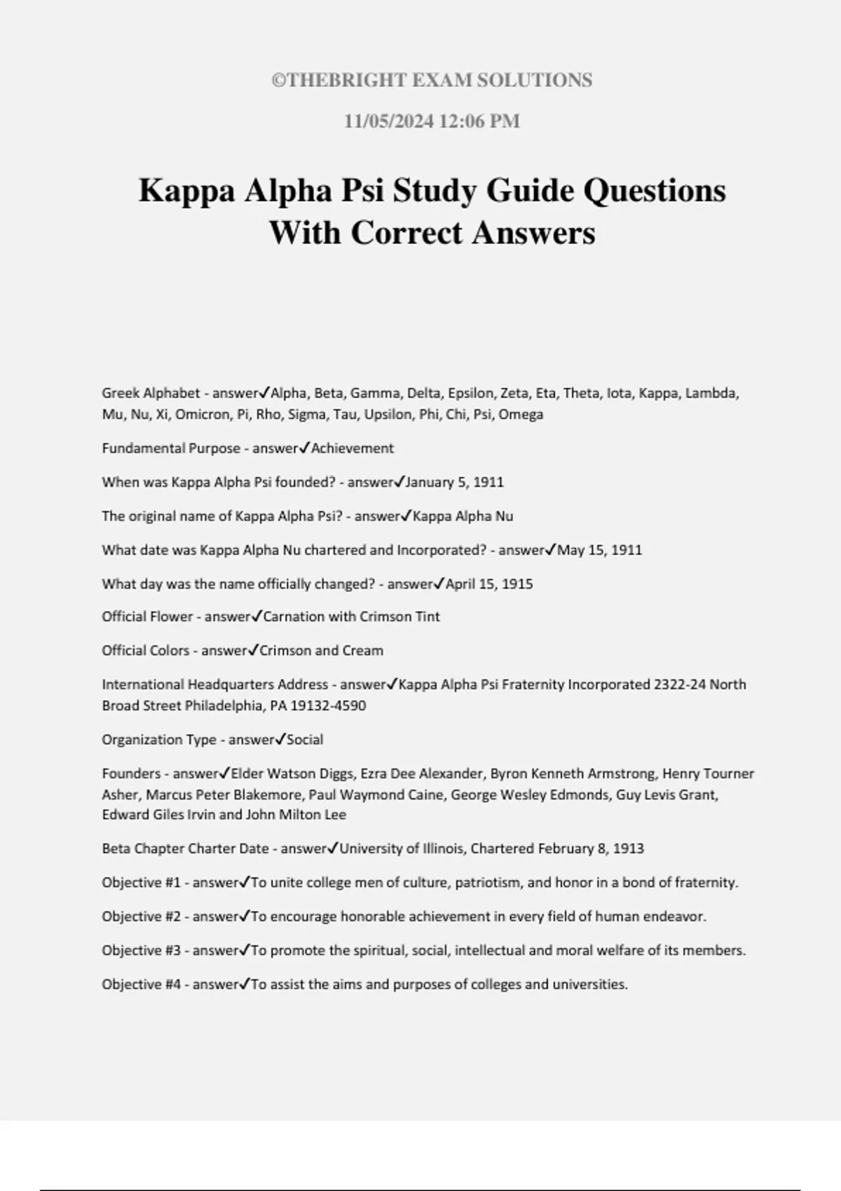 Kappa Alpha Psi Study Guide Questions With Correct Answers