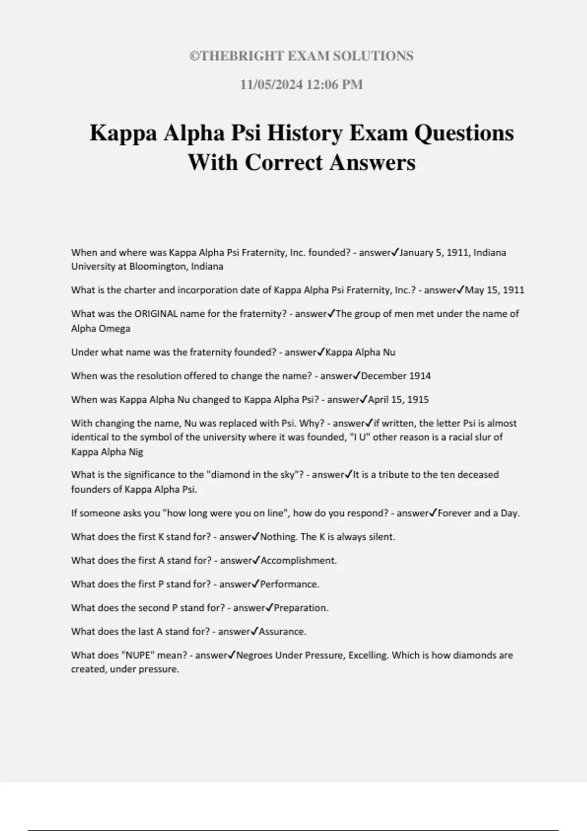 Kappa Alpha Psi History Exam Questions