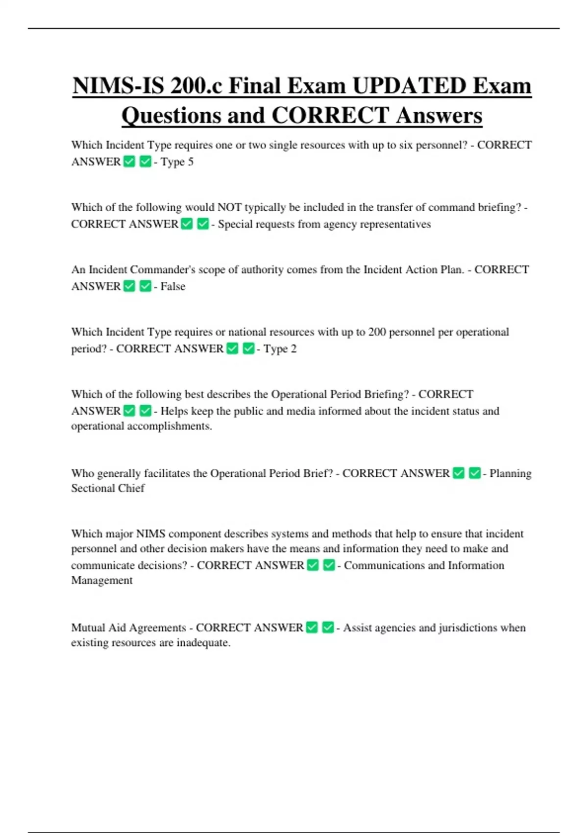 NIMS-IS 200.c Final Exam UPDATED Exam Questions and CORRECT Answers