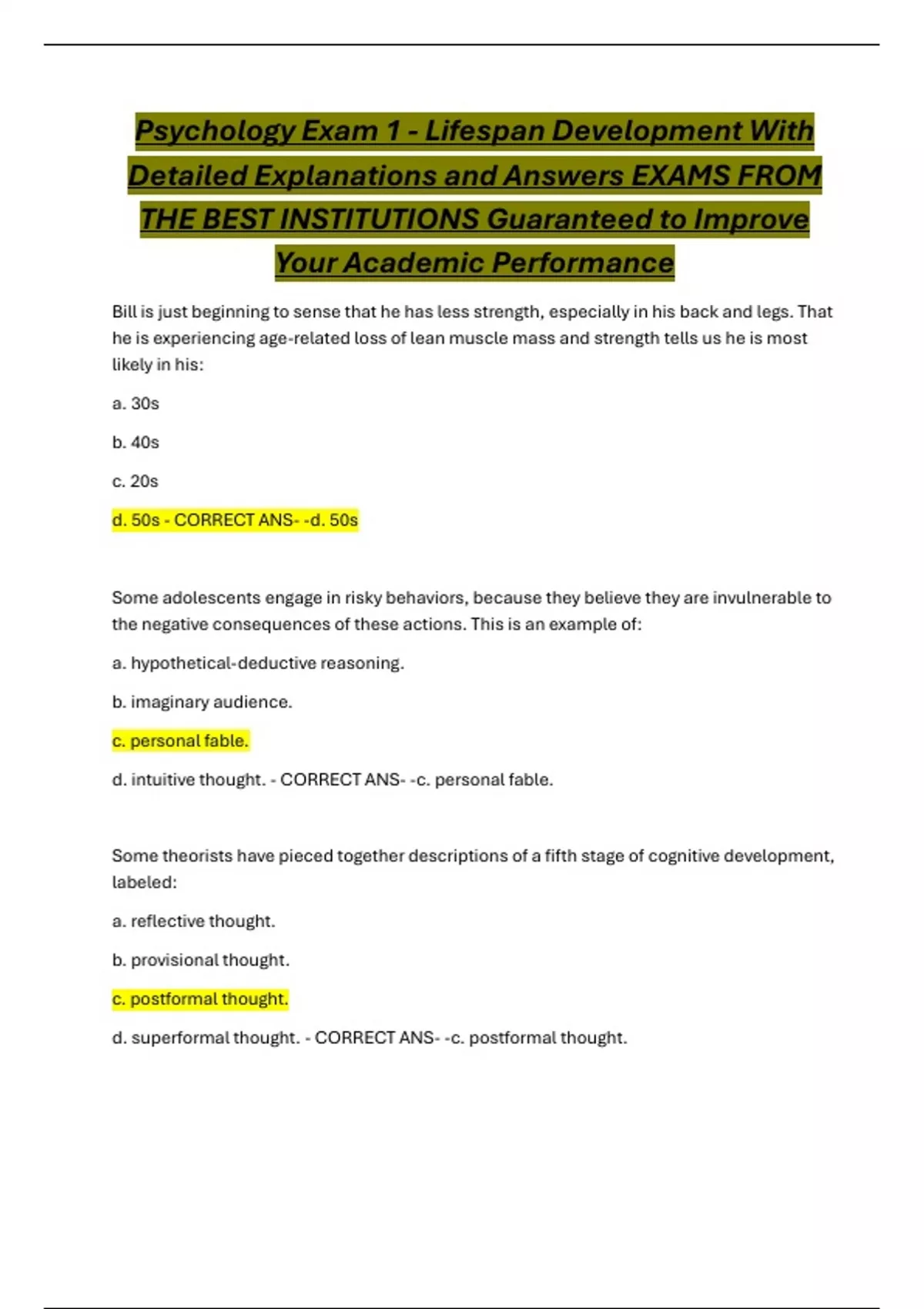 Detailed Explanations and Answers EXAMS FROM