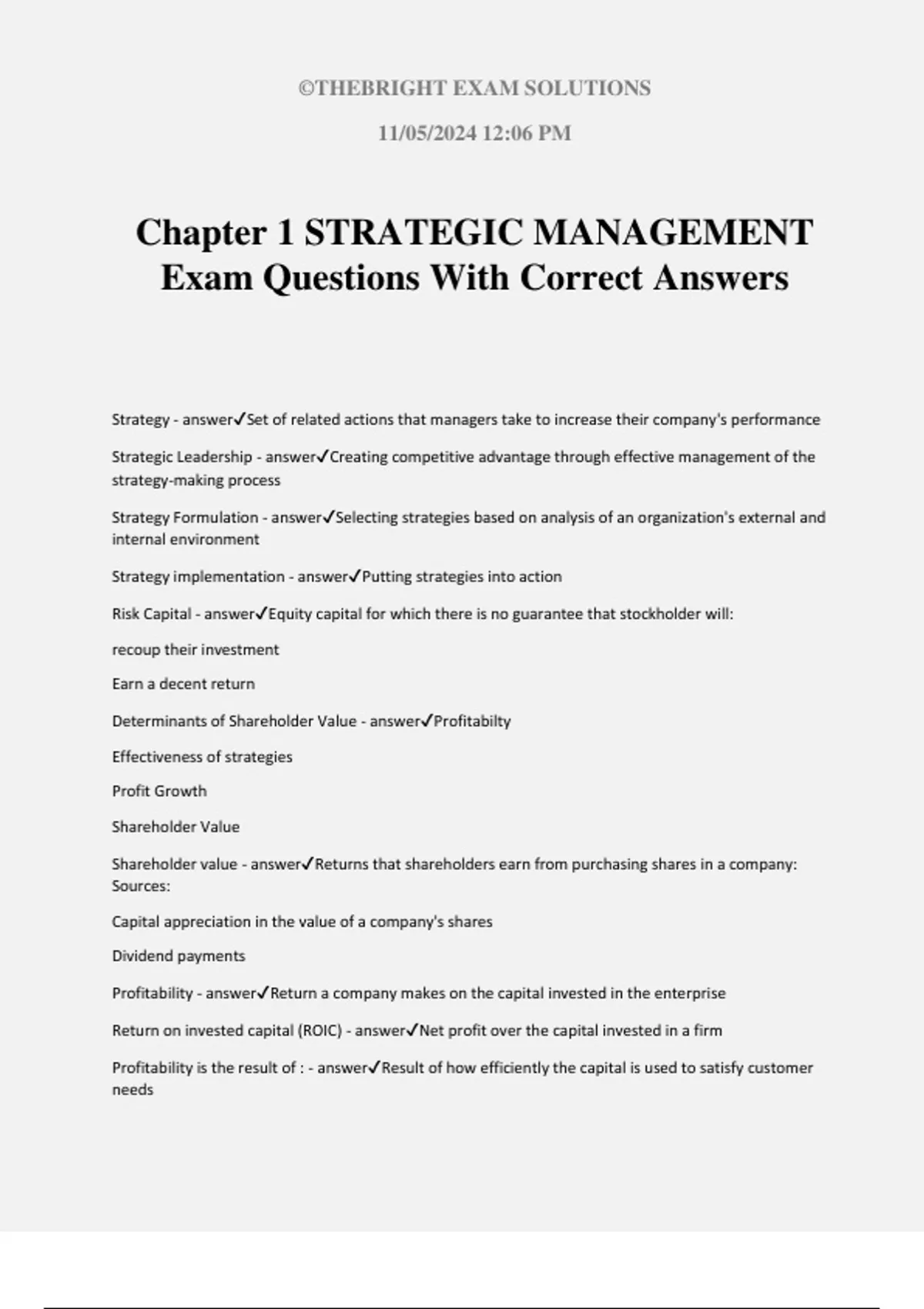 Determinants of Shareholder Value - answer✔Profitabilty