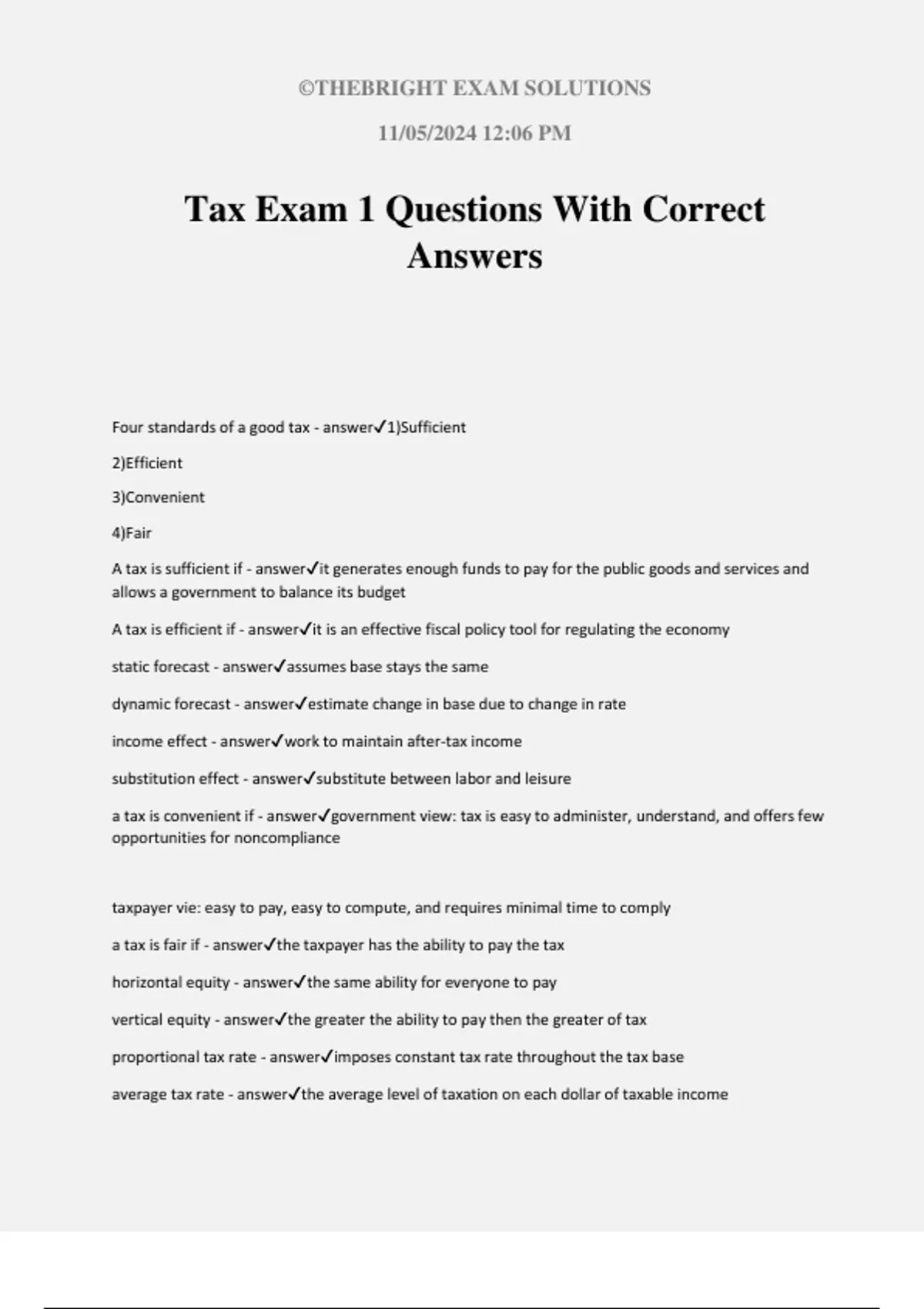 Tax Exam 1 Questions With Correct