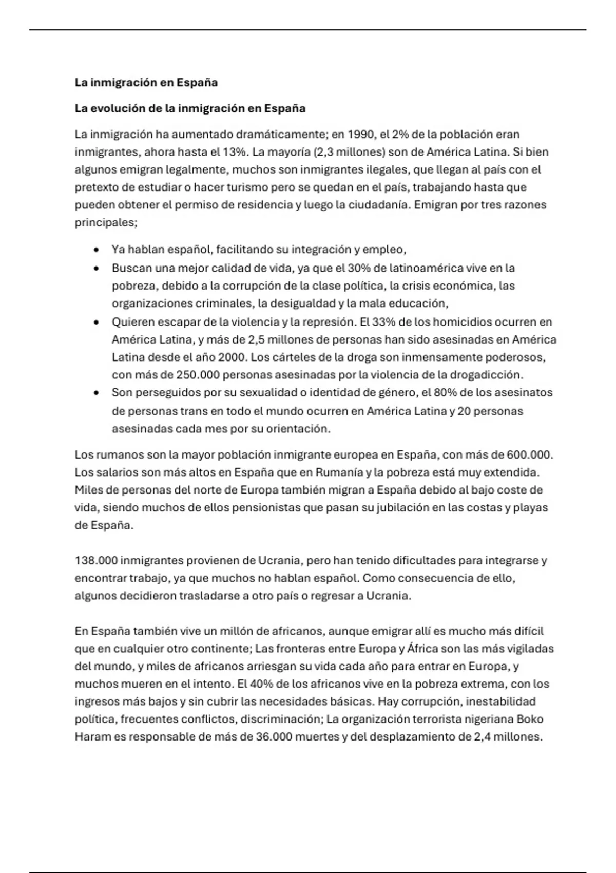 Sumario A-Level Spanish module 7, 8, 9 - La inmigración (español )